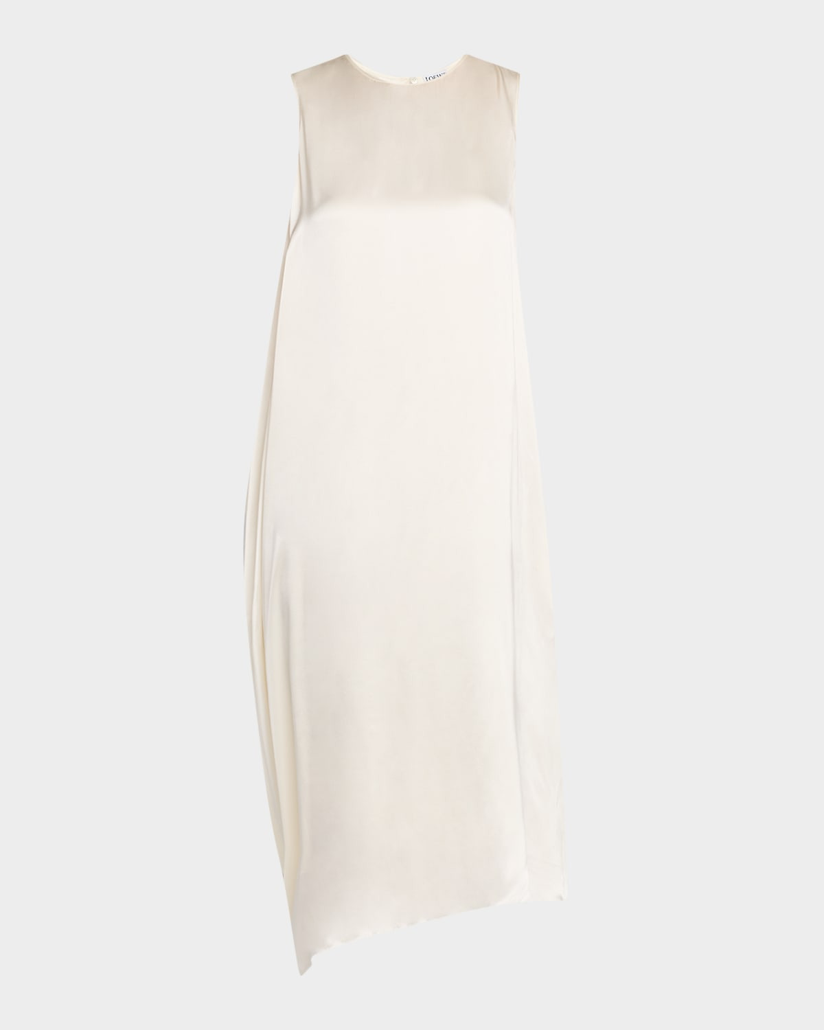 - Loewe dress featuring a draped back with a leather logo patch - Round neckline; hook/keyhole back - Sleeveless - Shift silhouette - Hem falls below the knee - Slipover style - Silk/leather - Made in France