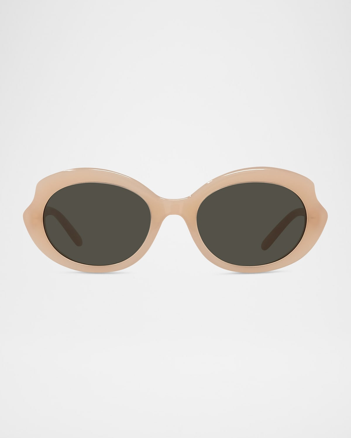 - Loewe sunglasses in acetate - Recoloring of the slim mini oval sunglasses in a new desirable color - Eye/bridge/temple (in mm): 40.9-20-140 - Eyewear style: Shield - Acetate - 100% UVA/UVB protection - Made in Italy - Proposition 65 warning for California residents