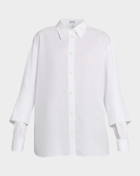 A reimagined classic, this shirt by Loewe is crafted of lightweight stripetextured cotton poplin featuring doublelayer sleeves with turnup French cuffs and Anagram Pebble cufflinks. Point collar; button front Long sleeves; button cuffs Loose fit Shirttail hem Cotton/polyester Made in Italy