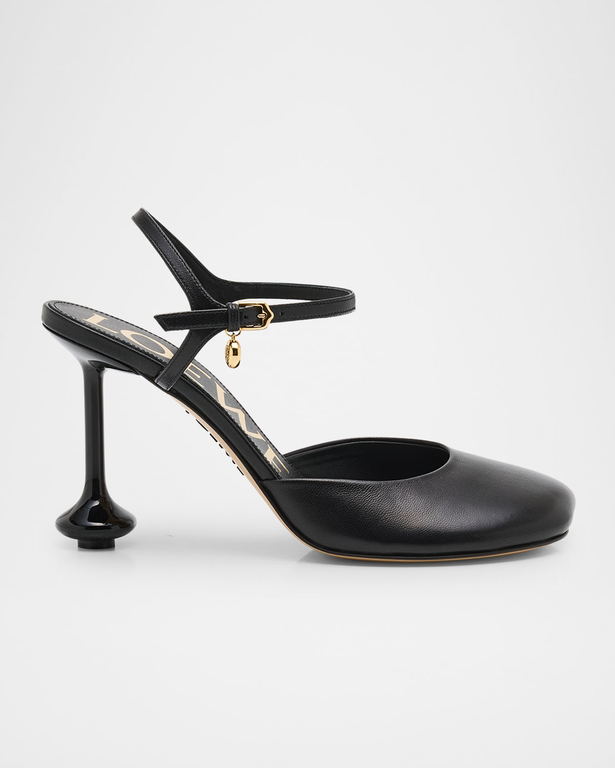 - Loewe "Toy" leather pumps - 3.50 in / 90 mm stiletto drop kitten heel - Round toe - Adjustable ankle strap - Leather outsole - Lining: Unlined - Made in Italy