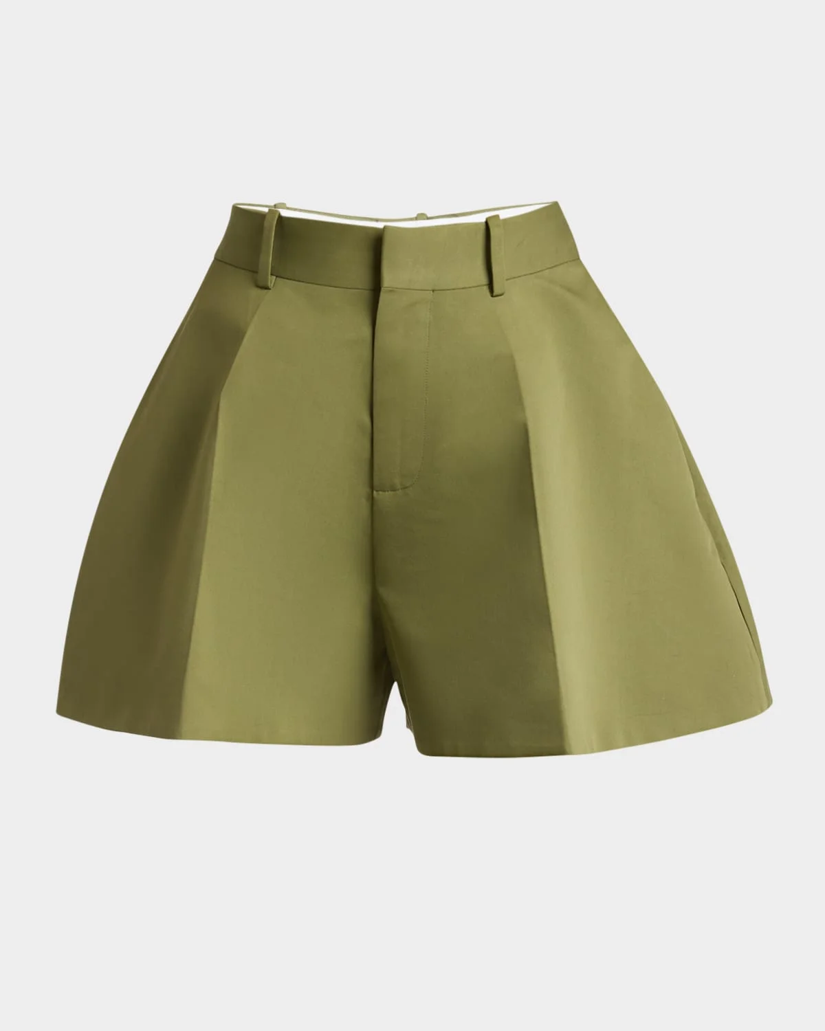 - Loewe trapeze shorts - High waist - Side slip pockets; back buttoned pocket - Flared fit - Mini length - Tab/zip fly; belt loops - Cotton/silk/viscose - Lining: Cotton/polyester/viscose - Made in Italy