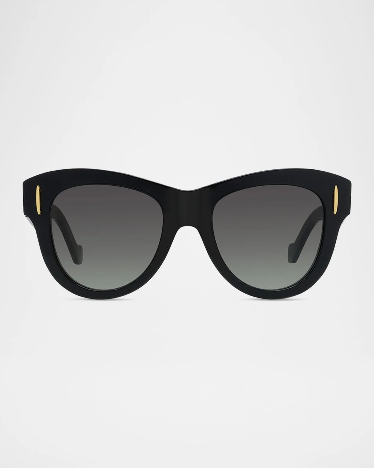 Loewe classic butterfly sunglasses adorned with goldtone accents on the frame Eye/bridge/temple (in mm): 5120140 Gradient lenses Saddle nose bridge Anagram metal signature in relief on both temples Wide, tapered arms 100% UVA/UVB protection Acetate Hand wash Made in Italy