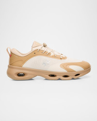 The Loewe x On collaboration sneakers showcase a layered mesh upper crafted from semitranslucent yarns with a TPU overlay on an exclusive lightweight foam sole Chunky flat heel Reinforced round toe Laceup vamp Speed laces with Pebble toggle Padded collar Backstay pull tab Single Cloud on the heel Collaboration logo on the tongue, side and pull tab Rubber outsole Suggested to size up as this style runs small Imported