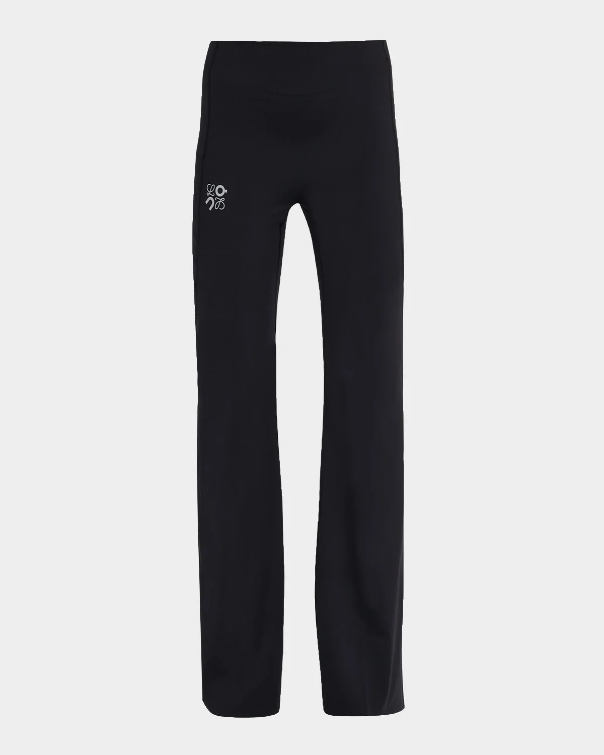 Loewe x On stretch bootcut pants adorned with collaboration logo print High rise Elastic waistband Side slip pockets Slim fit Full length Pullon style Polyester/elastane Professional cleaning recommended Imported