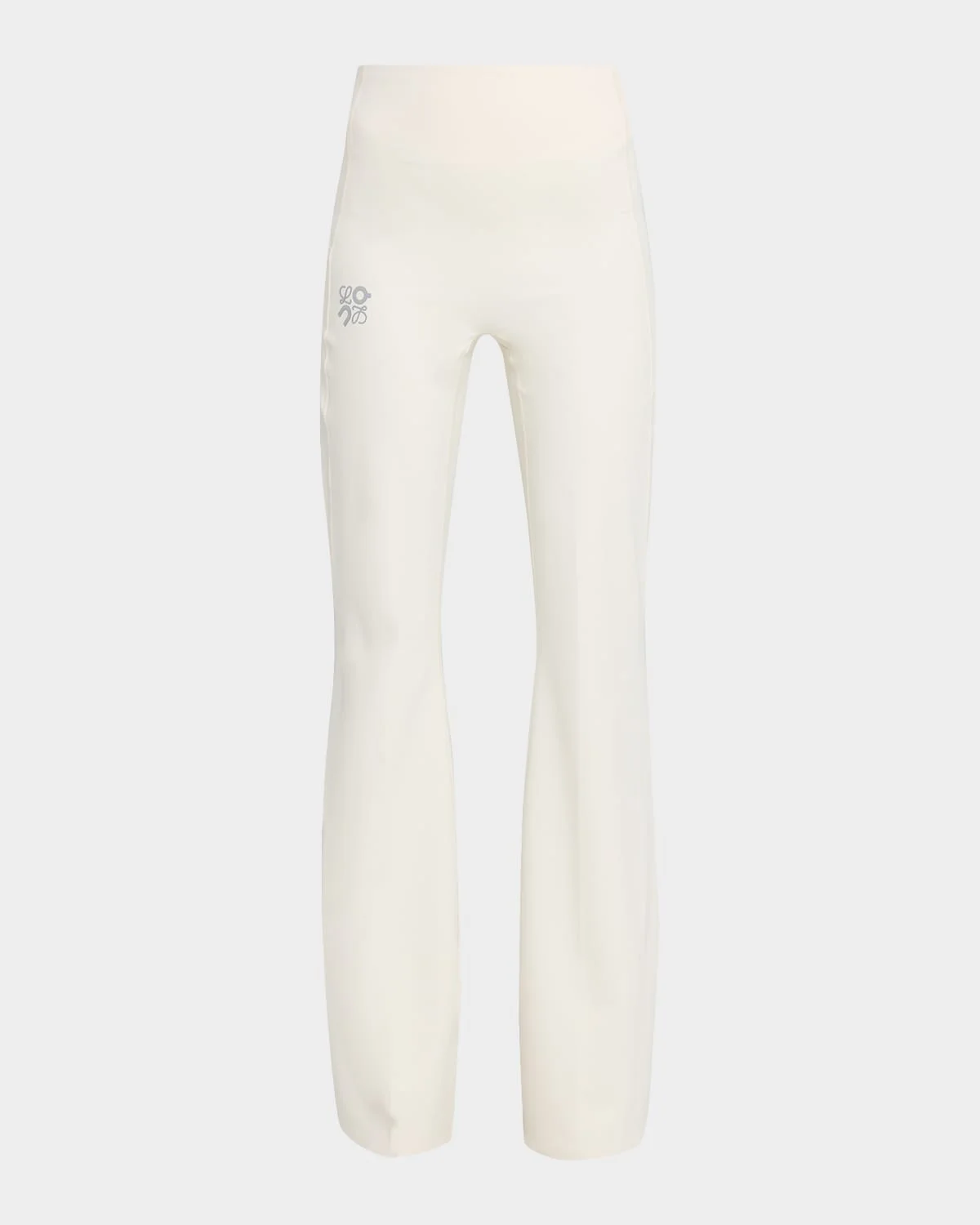 Loewe x On stretch bootcut pants adorned with collaboration logo print High rise Elastic waistband Side slip pockets Slim fit Full length Pullon style Polyester/elastane Professional cleaning recommended Imported