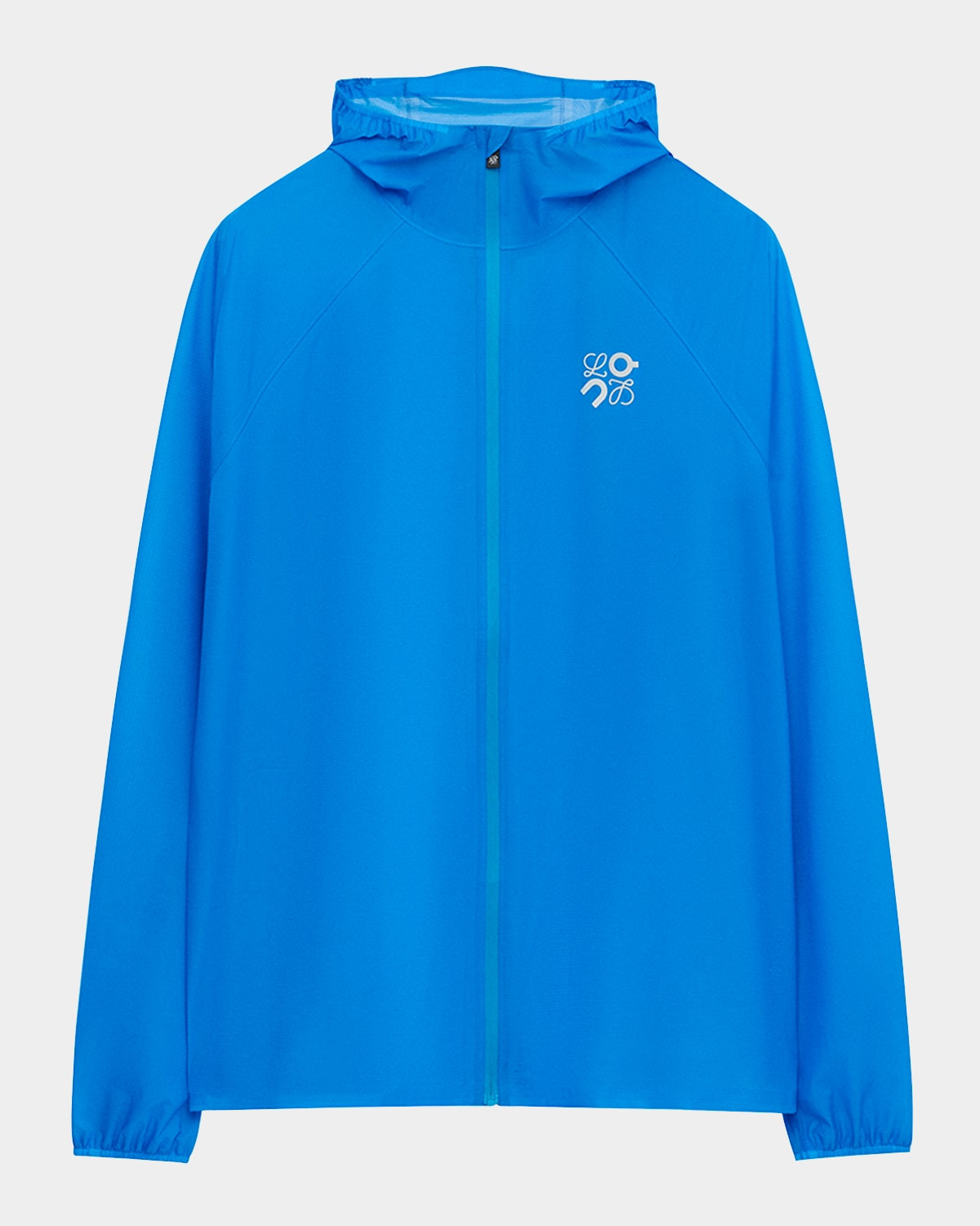 - Loewe "Ultra" jacket crafted in ultra-lightweight ripstop shell offering high performance standards of water repellency and windproofness. The perfect hiking and travel companion as it packs down into a pouch in the hood. - Made in collaboration with On - Elastic hooded neckline; waterproof two-way zip front - Long raglan sleeves - Reflective Anagram printed chest - Reflective LOEWE x On logo printed back - Waterproof zip rear pocket - Sealed seams - Straight fit - Hip length - Elasticized cuffs and hem - Nylon/polyamide/elastane - Professional cleaning recommended - Imported