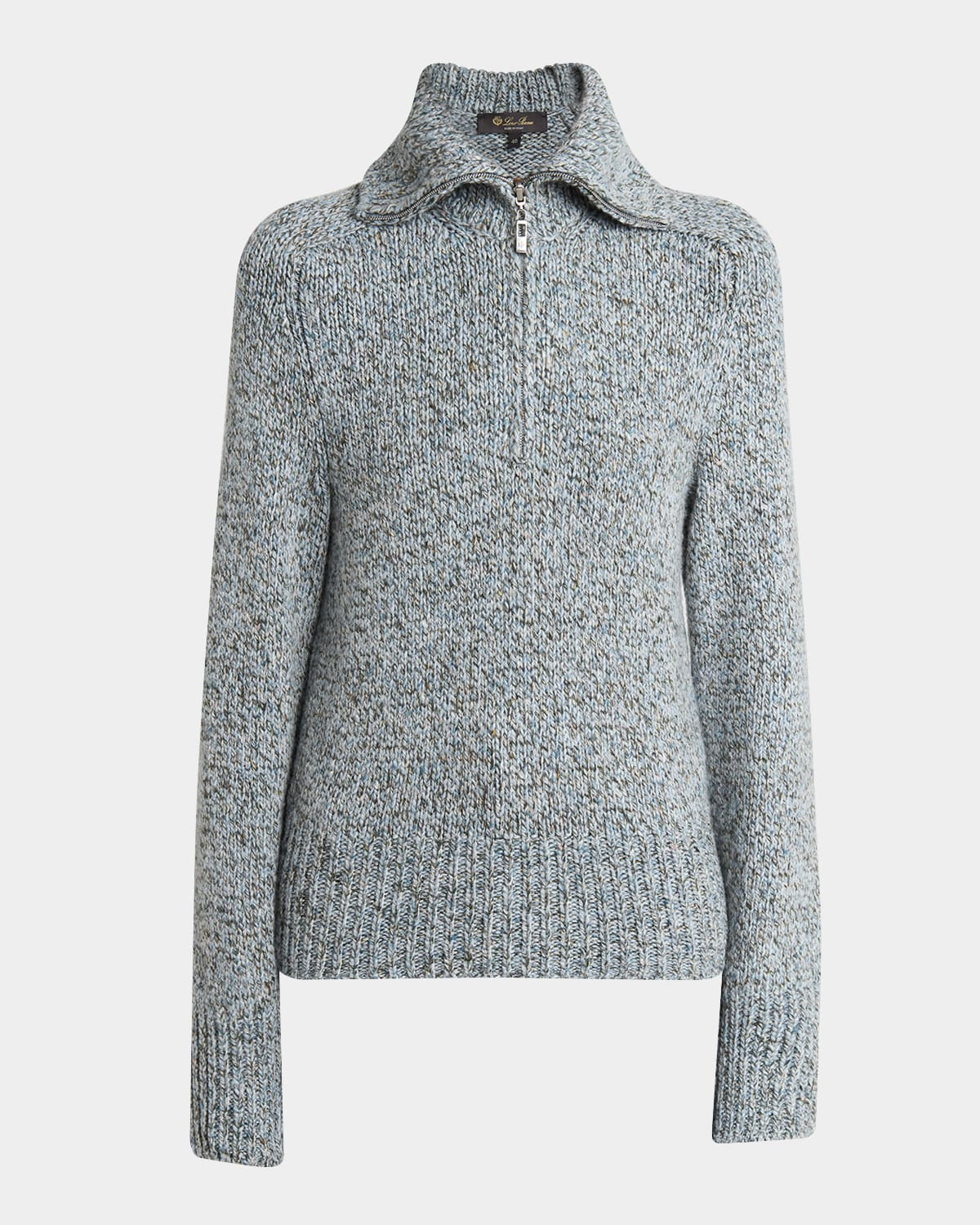 Loro Piana "Alpe Meggiana" cozy cashmere sweater 3GG Oversized collar; partial zipup neckline Long sleeves Hip length Ribbed cuffs and hem Pullover style Cashmere Made in Italy