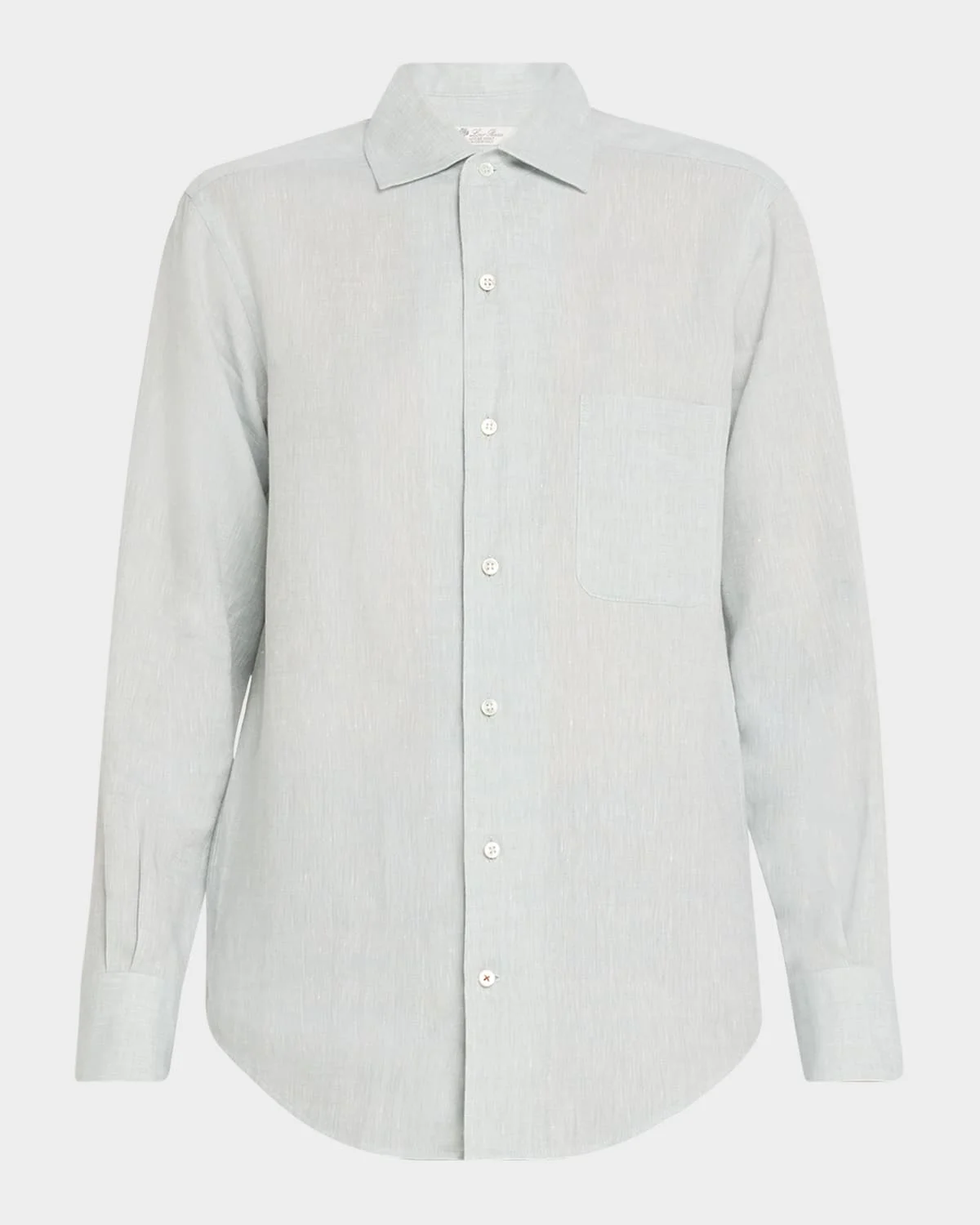 - Loro Piana "Andre" solaire shirt - Spread collar; button front - Long sleeves; button cuffs - Chest patch pocket - Relaxed fit - Rounded hem - Linen - Made in Italy