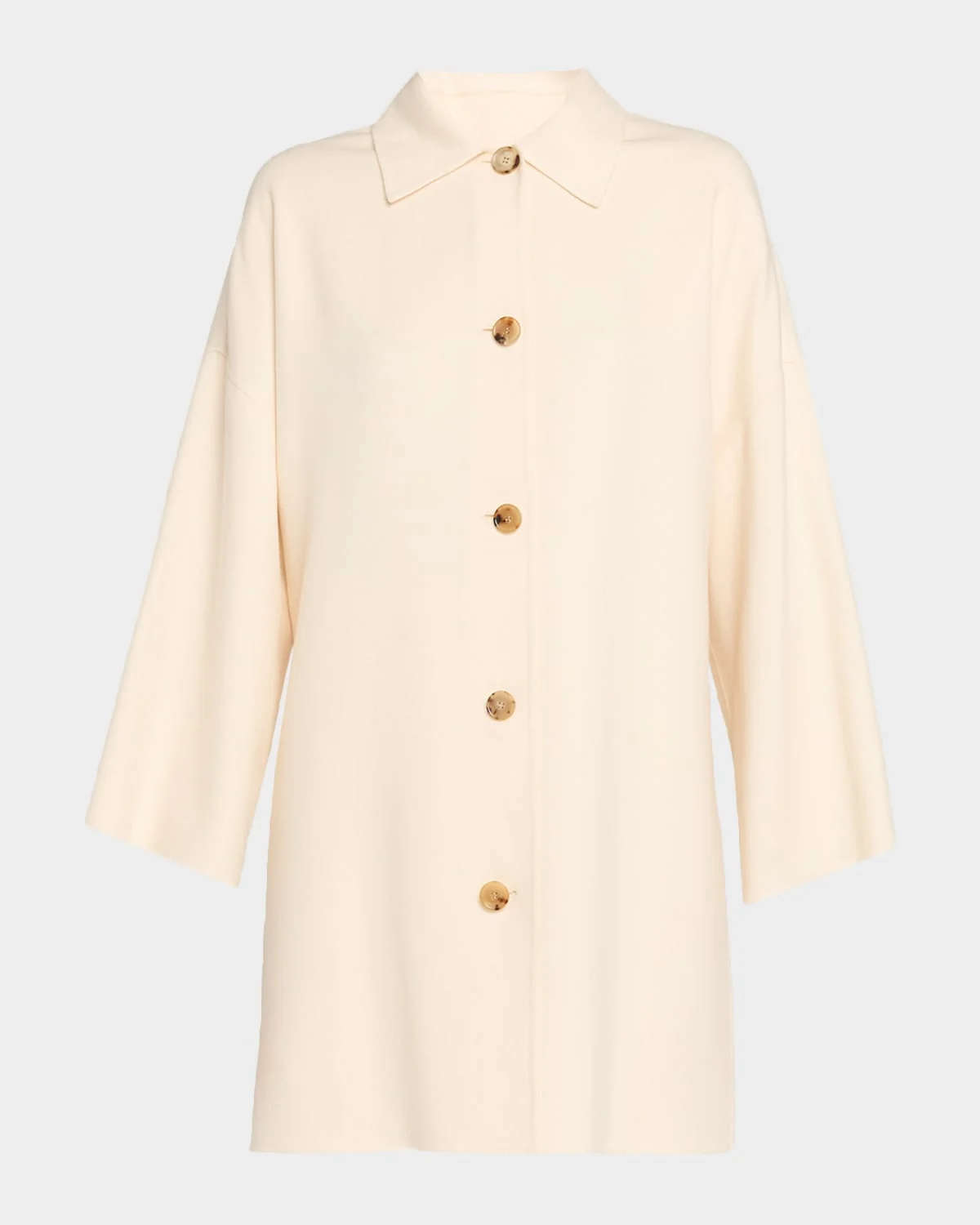- Loro Piana "Anthony" coat in a brushed double cashmere-blend - Point collar; single-breasted front - Long sleeves - Drop shoulders - Straight fit - Hem falls below the hip - Button closure - Wool/cashmere/silk - Made in Italy