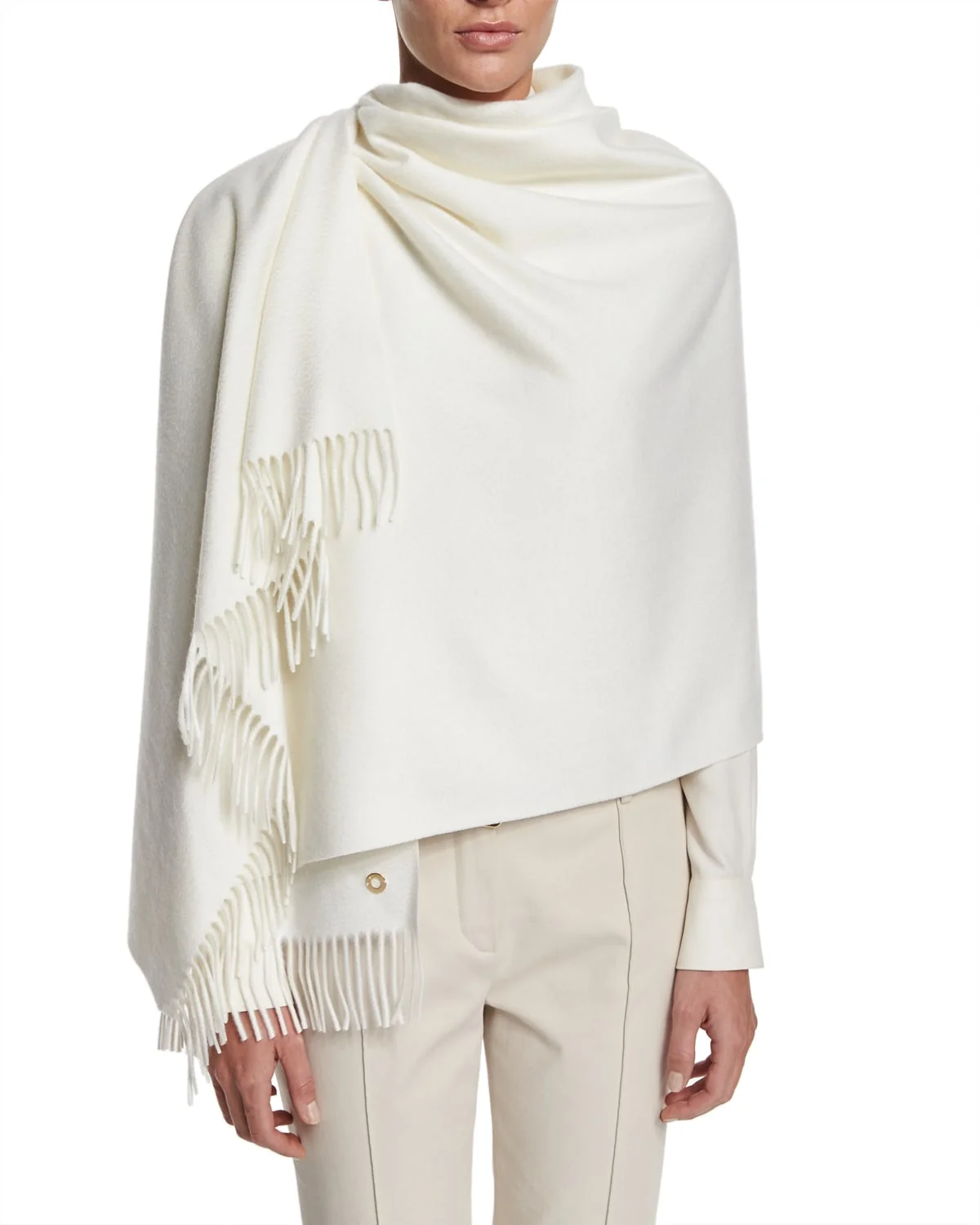 - Classic cashmere stole with exclusive Loro Piana “frisson” finish, which gives the fabric sheen and adds luminosity to the colours. Ideal worn as a wide scarf wrapped softly round the neck or as a shrug. - Loro Piana opera stole in cashmere - Approx. 79"L x 28"W - Logo detail at corner - Dry clean - Made in Italy