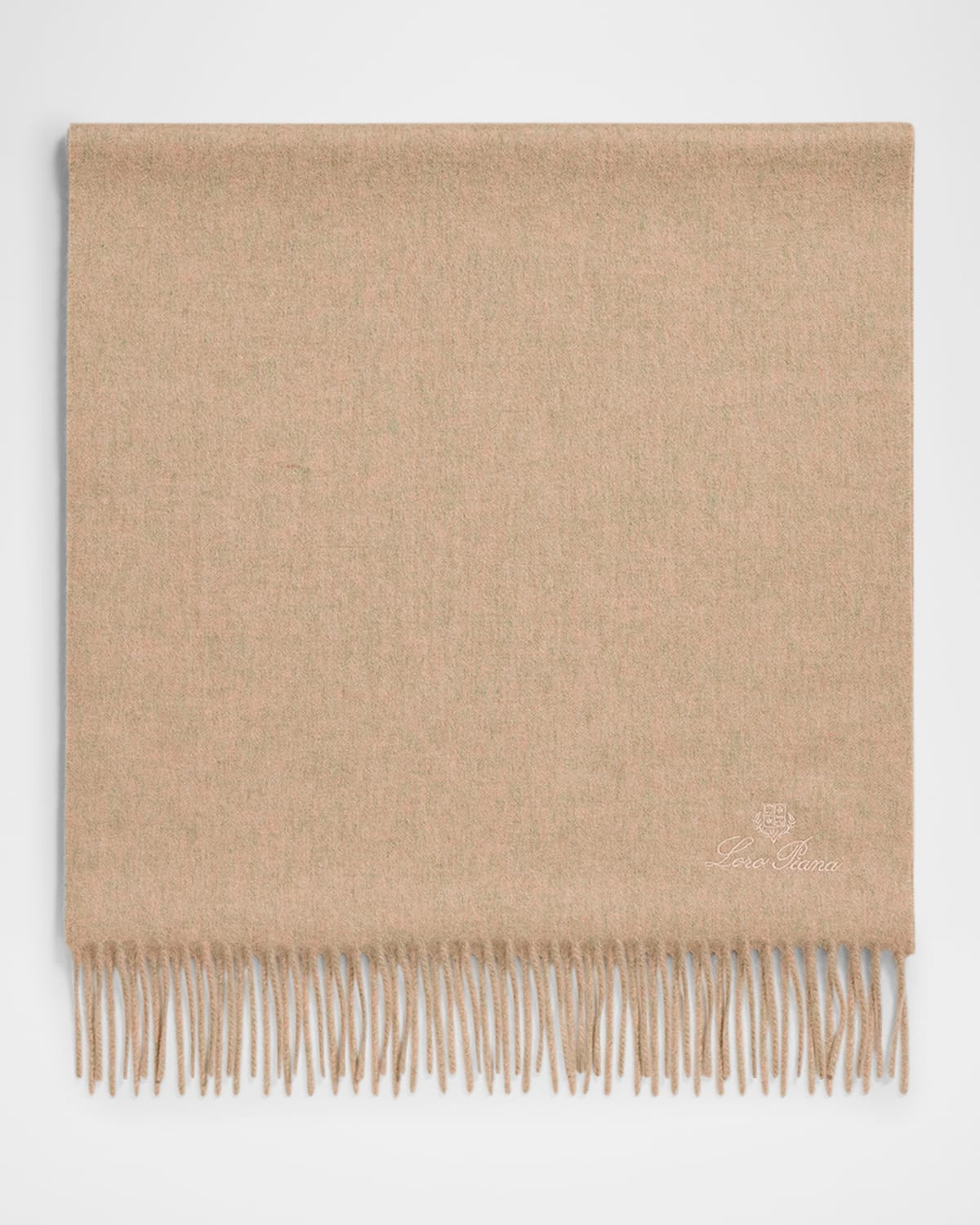 - Stole is made with Loro Piana 1/16 cashmere making it durable and long-lasting. - Frisson finish creates surface sheen, provides a rippling effect, and enhances luminosity of color. - Approx. 69"L x 17"W (175 x 43cm). - Fringe trim. - Logo grommet at corner. - 100% cashmere. - Dry clean. - Made in Italy.