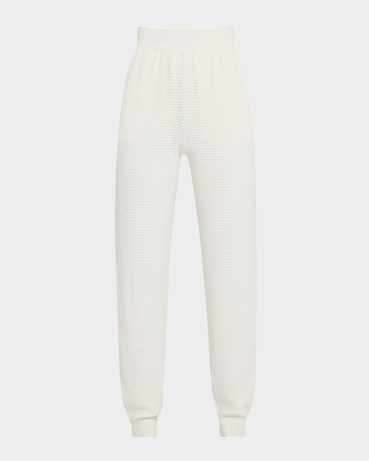 - Loro Piana "Dora Baltea" jogger trousers in 12gg horizontal ribbed knit - Mid rise - Side slip pockets - Tapered legs - Cropped at the ankle - Banded hem - Pull-on style - Cotton/silk/elastane - Made in Italy