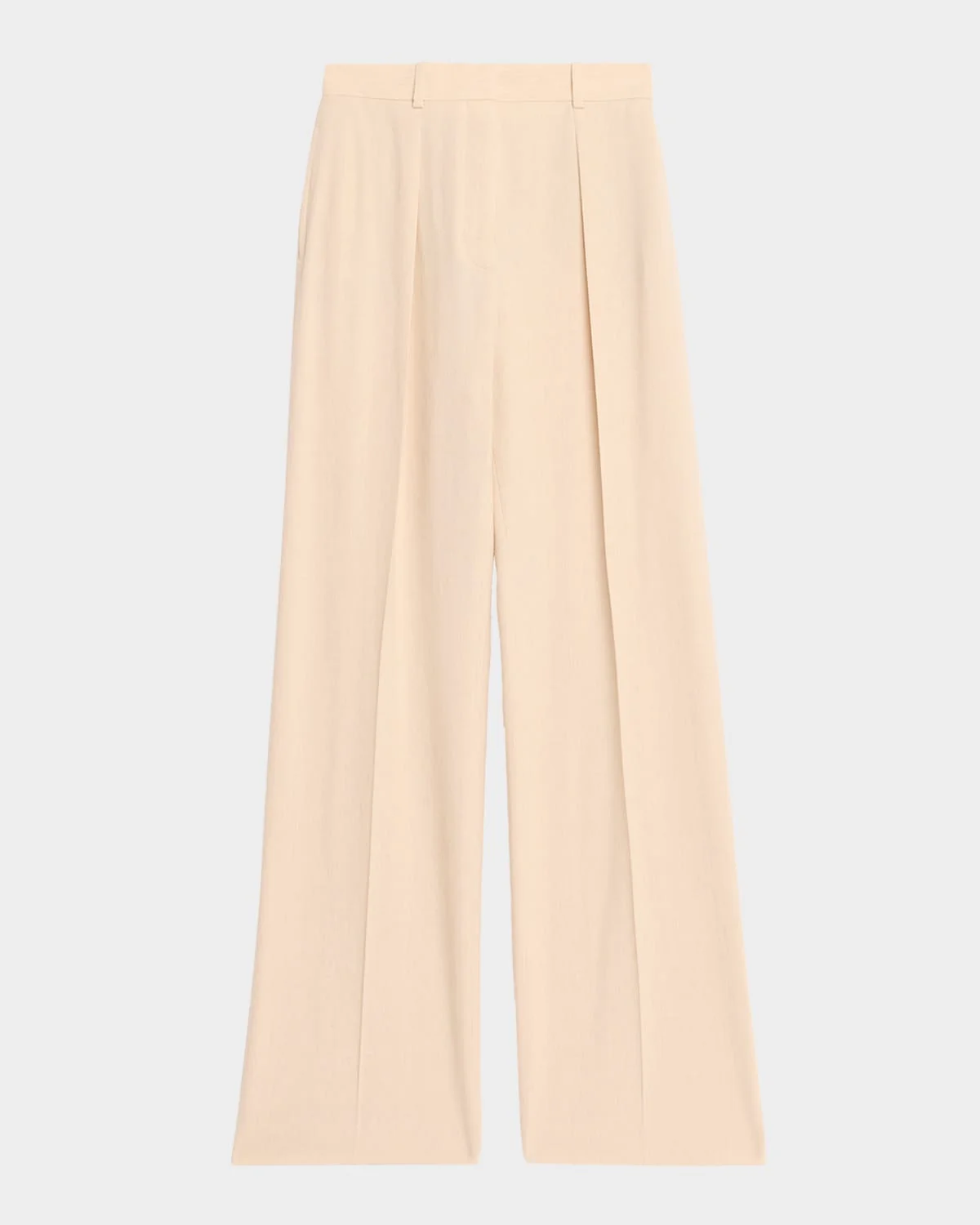 - These Loro Piana "Edward" trousers combine textured linen with wool crepe for rich texture and hand-feel - High-rise sits high on the hips - Pleated front - On-seam pockets - Back welt pockets - Full length - Wide legs - Hook and button/zip fly; belt loops - Flax/virgin wool - Dry clean - Made in Italy