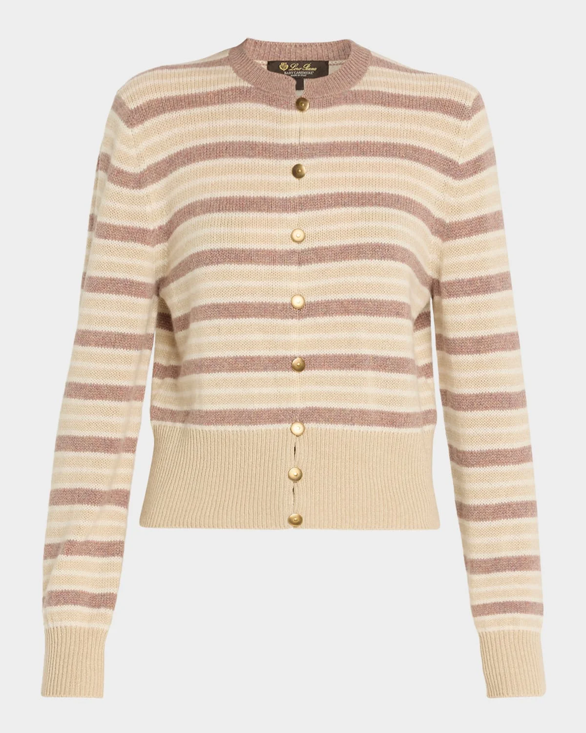 Loro Piana "Fobello" cardigan is knitted from iconic baby cashmere 7gg with a striped intarsia enveloping warmth with incredible lightness Crew neckline; button front Long sleeves Slim fit Ribbed cuffs and hem Cashmere Made in Italy