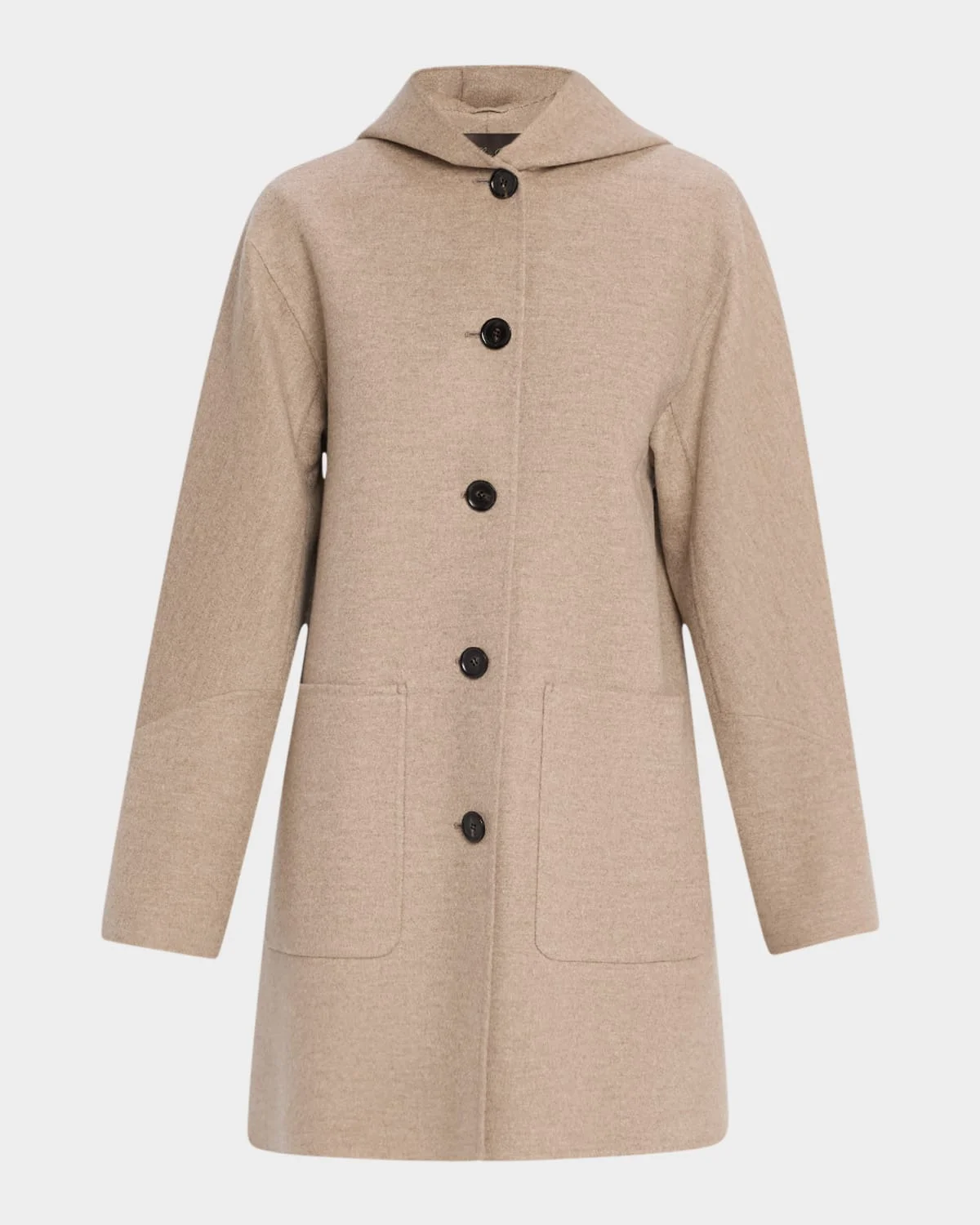 - Loro Piana "Kian" coat sown on the inside, its cashmere fabric is worked using a double construction technique for a seamless finish and fluid drape - Hooded silhouette - Front fastening with horn buttons - Long sleeves - Oversized two patch pockets - Regular fit - Cashmere - Made in Italy