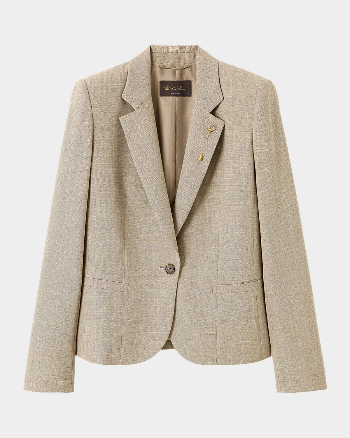 Loro Piana & apos;s "Lindy" jacket is tailored from virgin wool in a structured silhouette Notched lapels; single-breasted front Padded shoulders Long sleeves; button cuffs Hip welt pockets Double-vented back Virgin wool Lining: Silk Dry clean Made in Italy