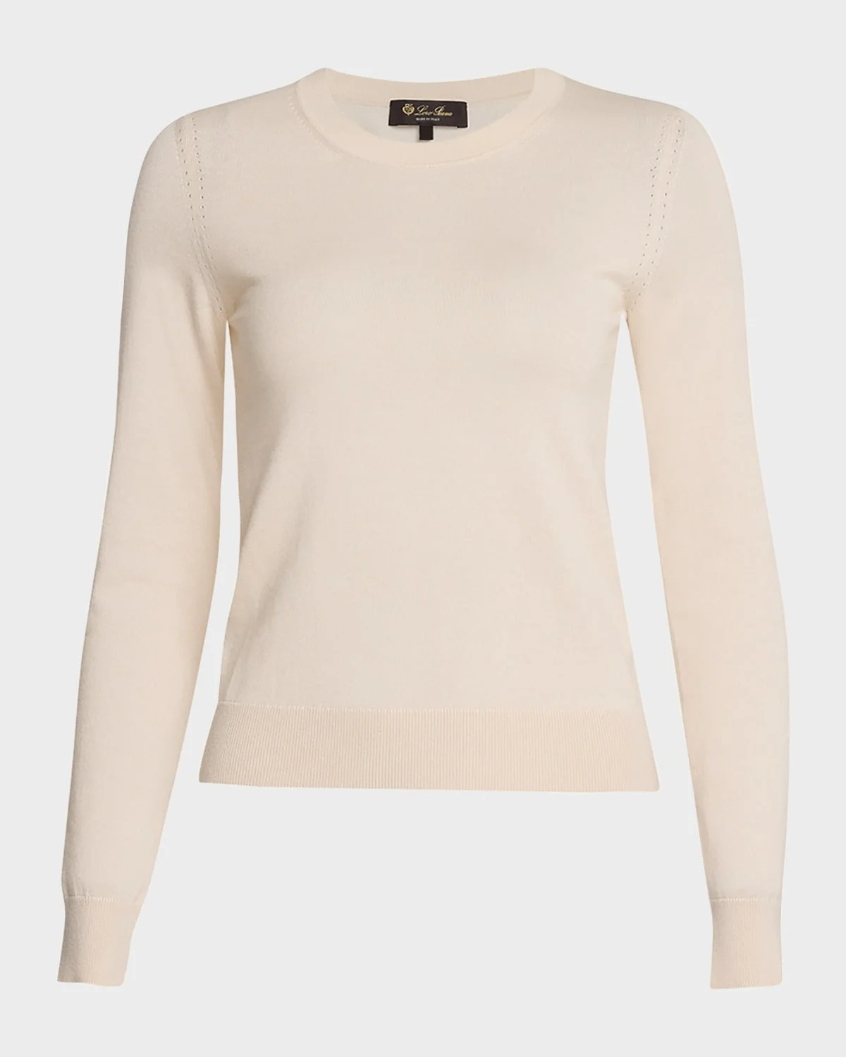 Loro Piana knit sweater with ribbed trim Round neckline Long sleeves Relaxed fit Pullover style Cashmere Made in Italy