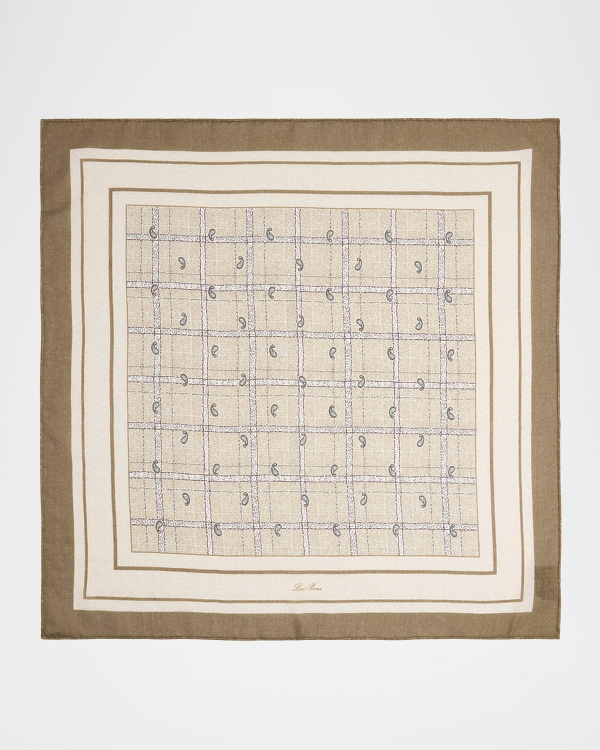 - Loro Piana "Boteh" pocket square crafted from a lightweight cashmere and silk blend - Approx. 23.6"L x 23.6"W - Animated with allover paisley shapes backdropped by a subtle check pattern - Cashmere/silk - Dry clean - Made in Italy