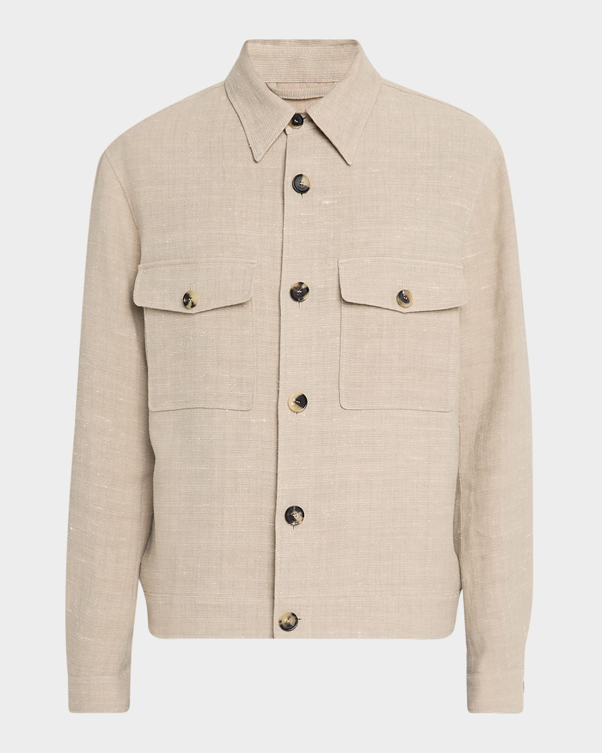 - Loro Piana "Clem" blouson in sumptuous Summer linen and silk - Point collar - Button front - Chest flap pockets - Long sleeves - Buttoned tabs - Flax/silk - Fully lined - Dry clean - Made in Italy