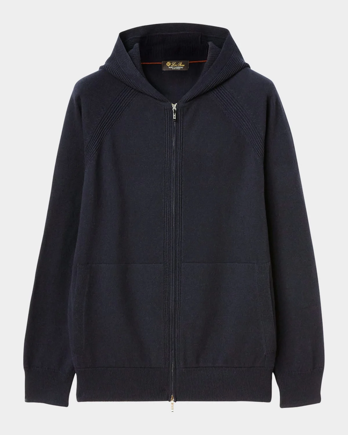 - Loro Piana "Merano" sweater made from ultra-lightweight baby cashmere yarn - Ultra-soft and rare baby cashmere fibers are solely obtained from the undercoat of baby Capra hircus goats - Hooded neckline - Two-way zip front - Split kangaroo pocket - Long Raglan sleeves - Ribbed cuffs and hem - Cashmere - Unlined - Dry clean - Made in Italy - Model is 6'1"/185cm.