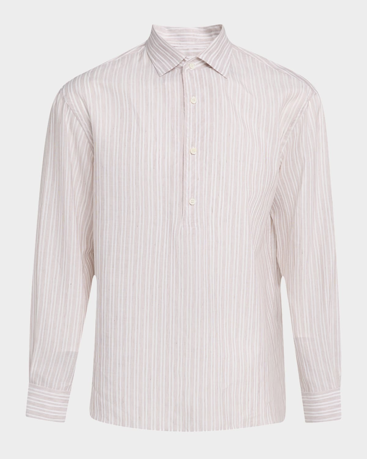 Men's Raffaele Cotton and Linen Stripe Sport Shirt
