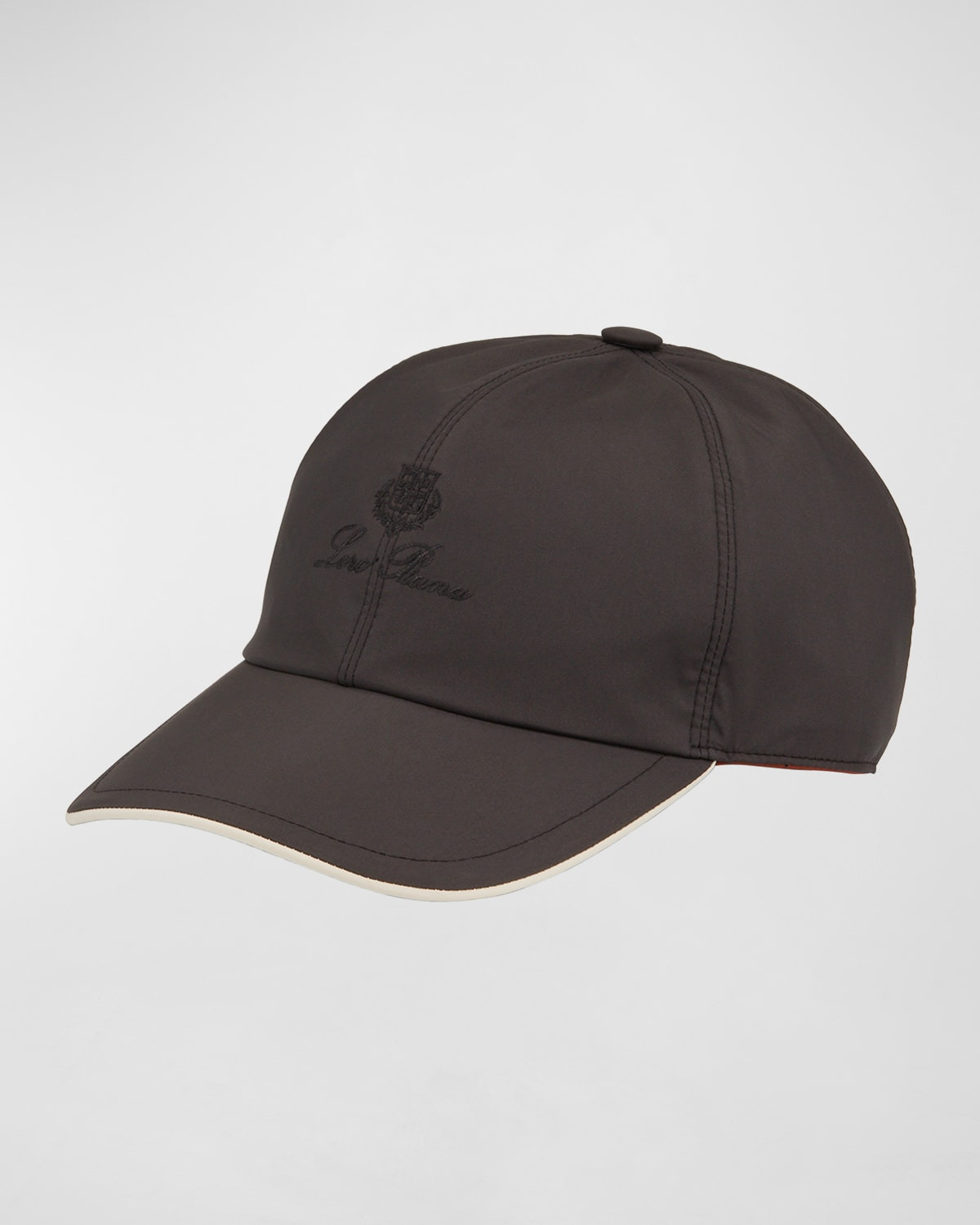 - Loro Piana baseball hat. - Treated with Storm System for a waterproof, wind-resistant finish. - Embroidered logo at front. - Elasticized strap at back. - Polyester; lining, cotton/polyester. - Made in Italy. - Size Note: Item runs large, consider ordering a size down.