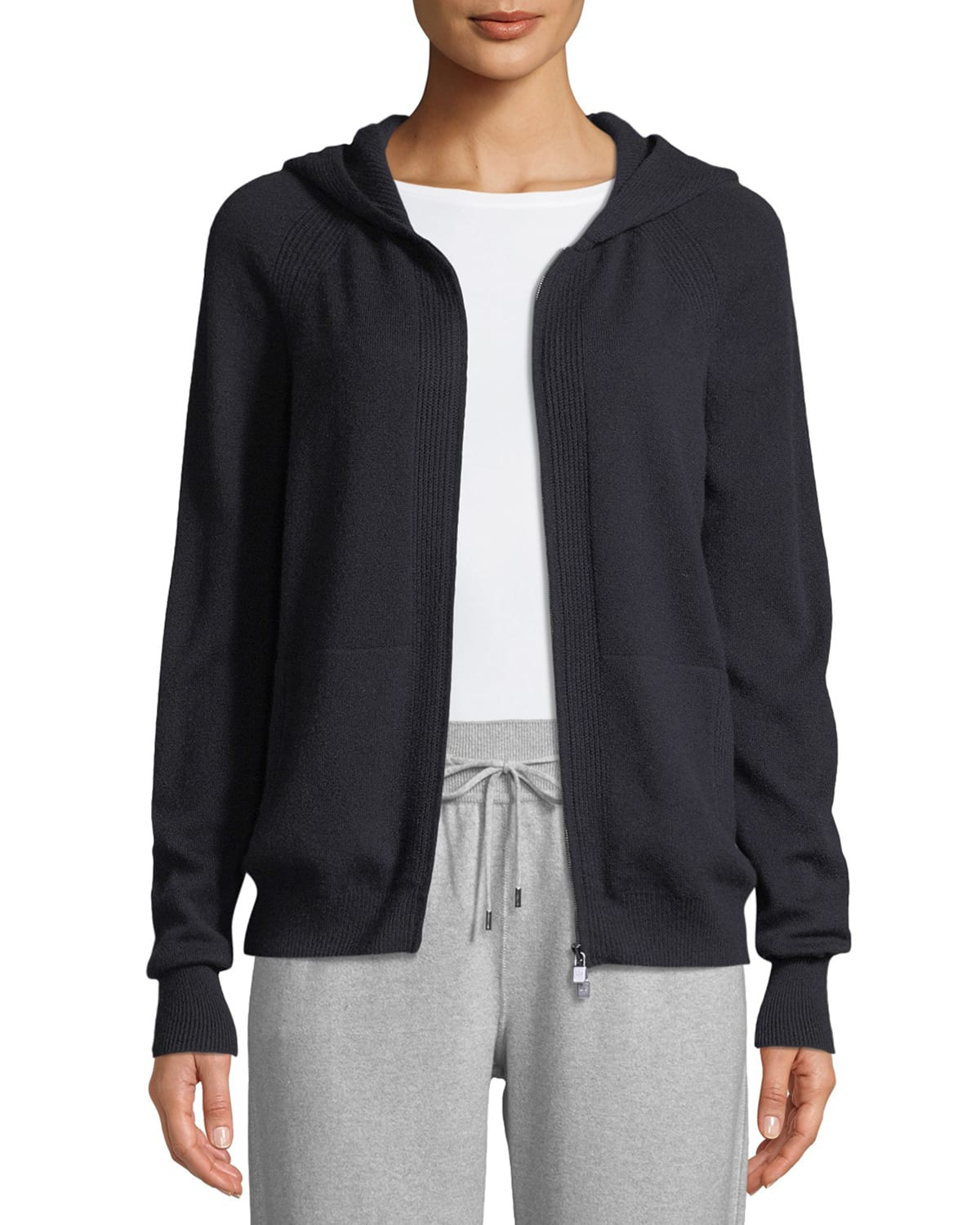 Merano Cashmere Zip-Front Hoodie Sweater