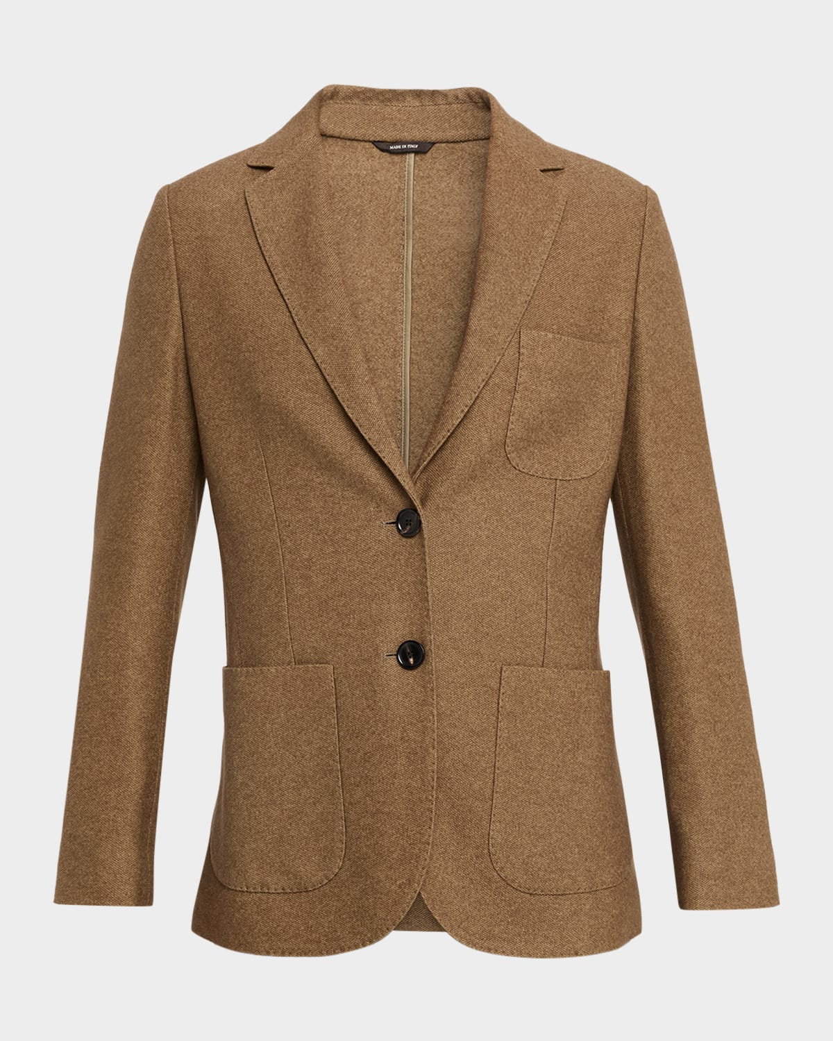 - Loro Piana jacket finished with topstitching - Notch lapels; single-breasted front - Long sleeves; button cuffs - Padded shoulders - Chest and hip patch pockets - Tailored fit - Walking vent back - Button closure - Cashmere - Made in Italy