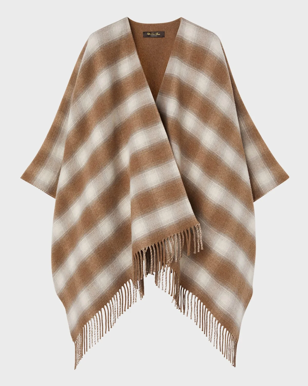Loro Piana poncho in tartan double cashmere and virgin wool Features fringe trim Approx. 21.6"L x 4.7"W Item Weight (Lbs.): 0.9 Dry clean Made in Italy