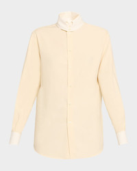 - A refined wardrobe essential, the "Thea" shirt from Loro Piana is framed by the Dylan collar, which buttons in the front for a delicate heart shape - Complete with mother-of-pearl buttons for a classic touch - Swallow-tail collar - Button front - Long sleeves - Button cuffs - Box-pleated back yoke - Rounded hem - Slightly oversized fit - Silk - Dry clean - Made in Italy