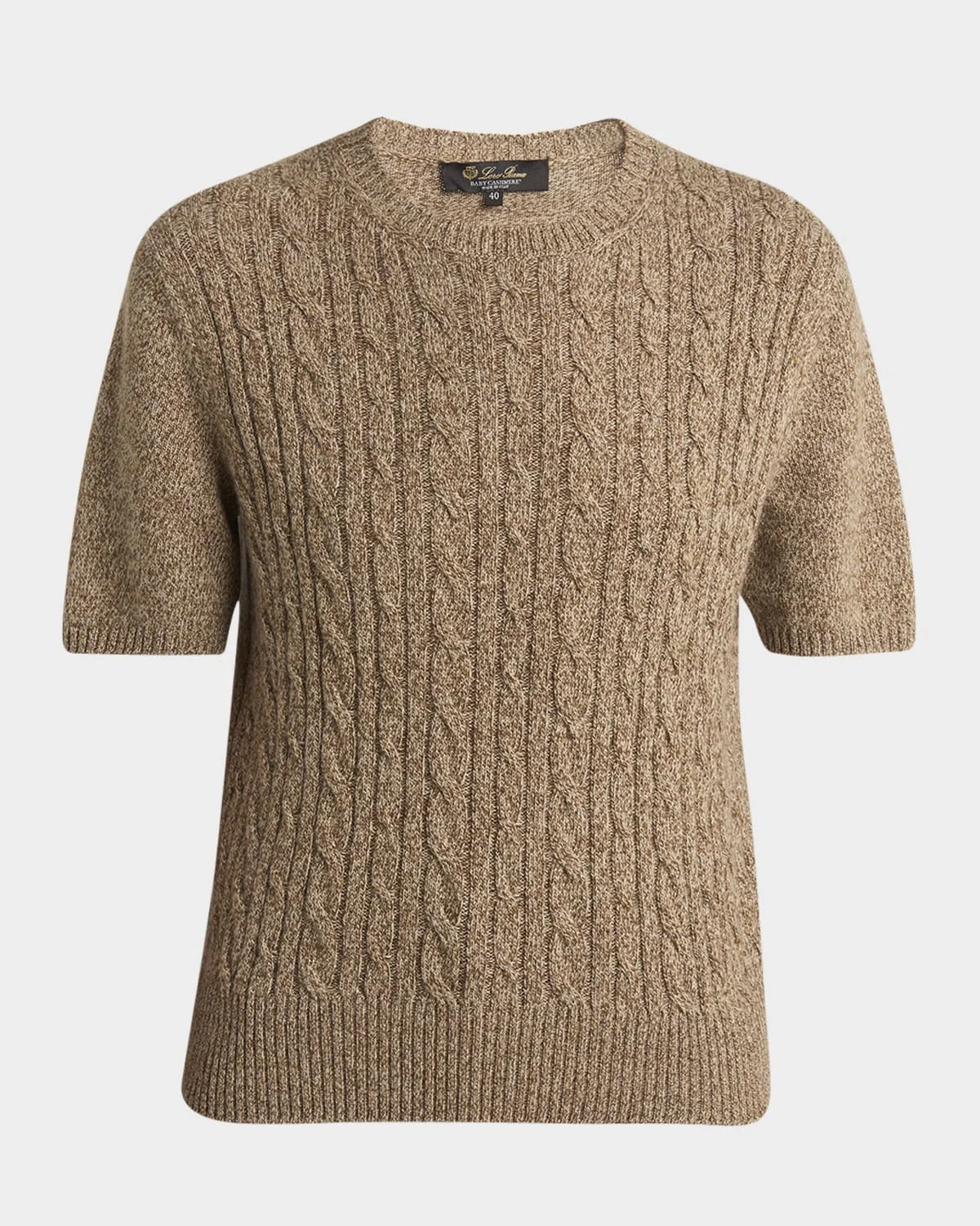 Loro Piana "Treccia" sweater in 8GG baby cashmere, featuring prominent cable detailing in the front and elegant ribbed trim Crew neckline Short sleeves Pullover style Relaxed fit Cashmere Made in Italy