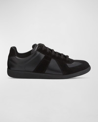 - Maison Margiela low-top sneaker in leather and suede. - Round toe. - Lace-up front. - Signature label at tongue. - Padded collar. - Maison Margiela signature white stitched label detail on back collar. - Leather lining and insole. - Rubber outsole. - "Replica" is made in Italy.