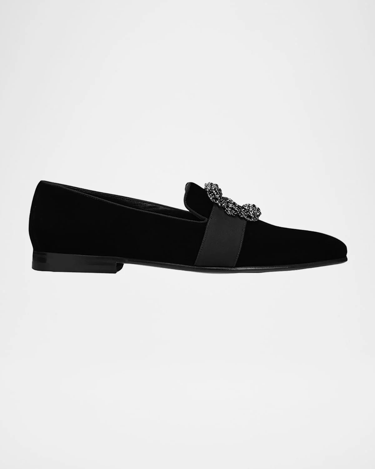 Men's Carlton Square Crystal Buckle Velvet Loafers
