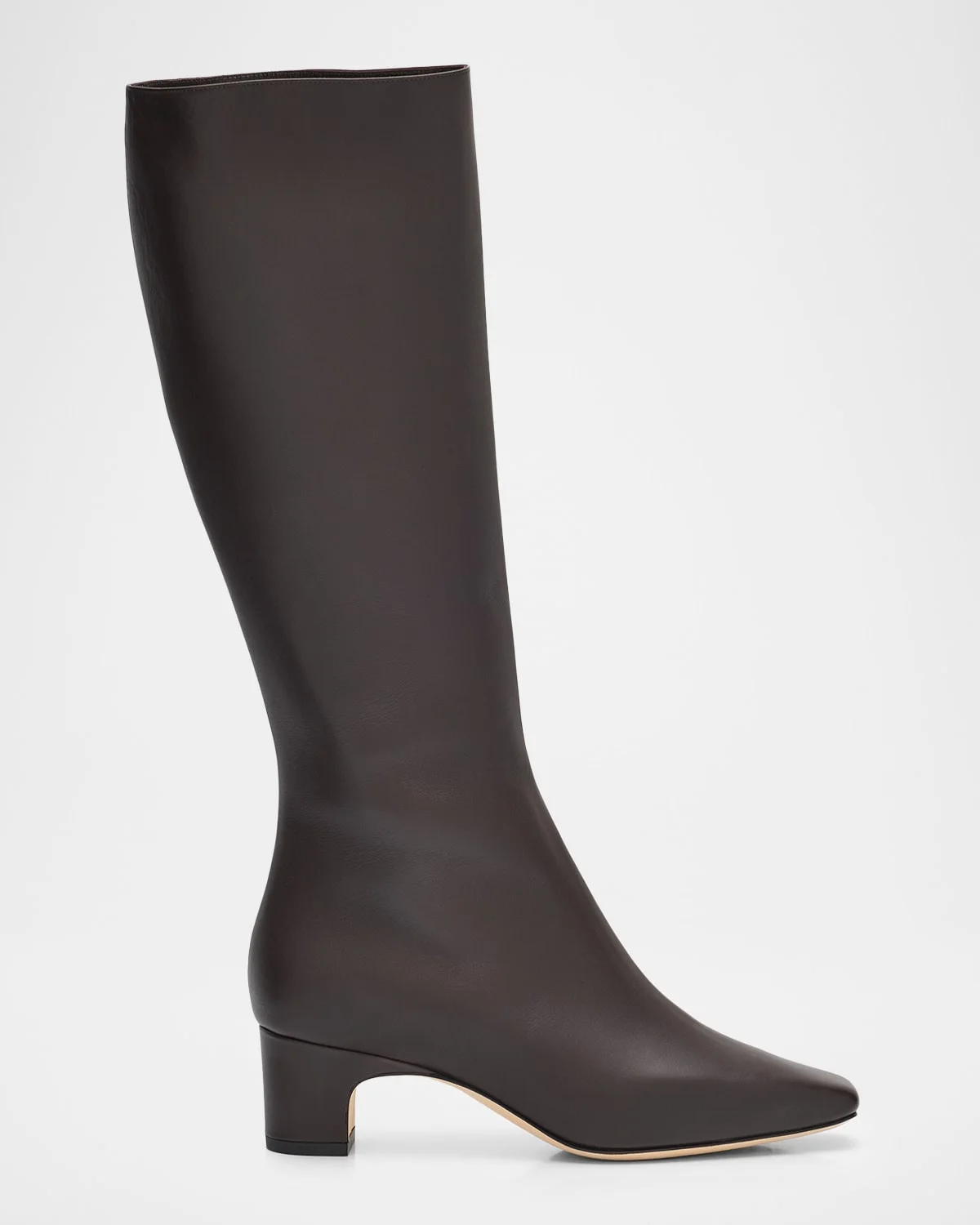 Crafted from luxurious Italian calf leather, the Ofara kneehigh boots by Manolo Blahnik 2.00 in / 50 mm covered kitten heel Almond toe Side zip eases dress Goat leather lining Leather outsole Made in Italy