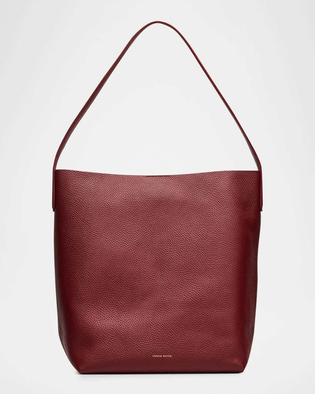 Mansur Gavriel everyday shoulder bag in calf leather Shoulder strap, 12.5" drop Open top with magnetic closure Interior, one slip pocket Approx. 10.2"H x 13"W x 1.9"D Spot clean Made in Italy