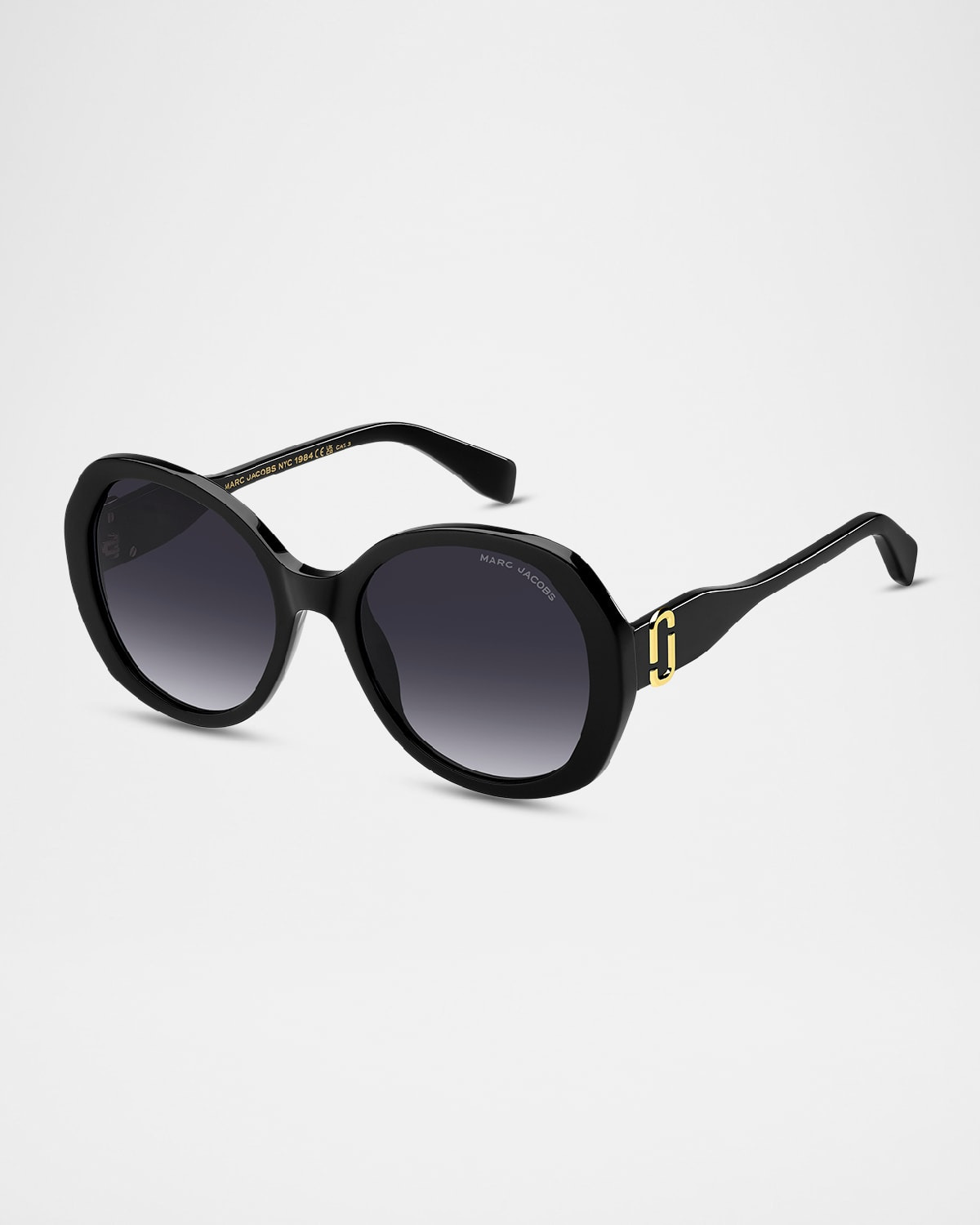 - Marc Jacobs oval sunglasses in acetate - Lens/bridge/temple (in mm): 55-20-145 - Gradient lenses - Logo on left lens and temples - Saddle nose bridge - Wide, tapered arms - Wipe clean - 100% UVA/UVB protection - Imported - Proposition 65 warning for California residents