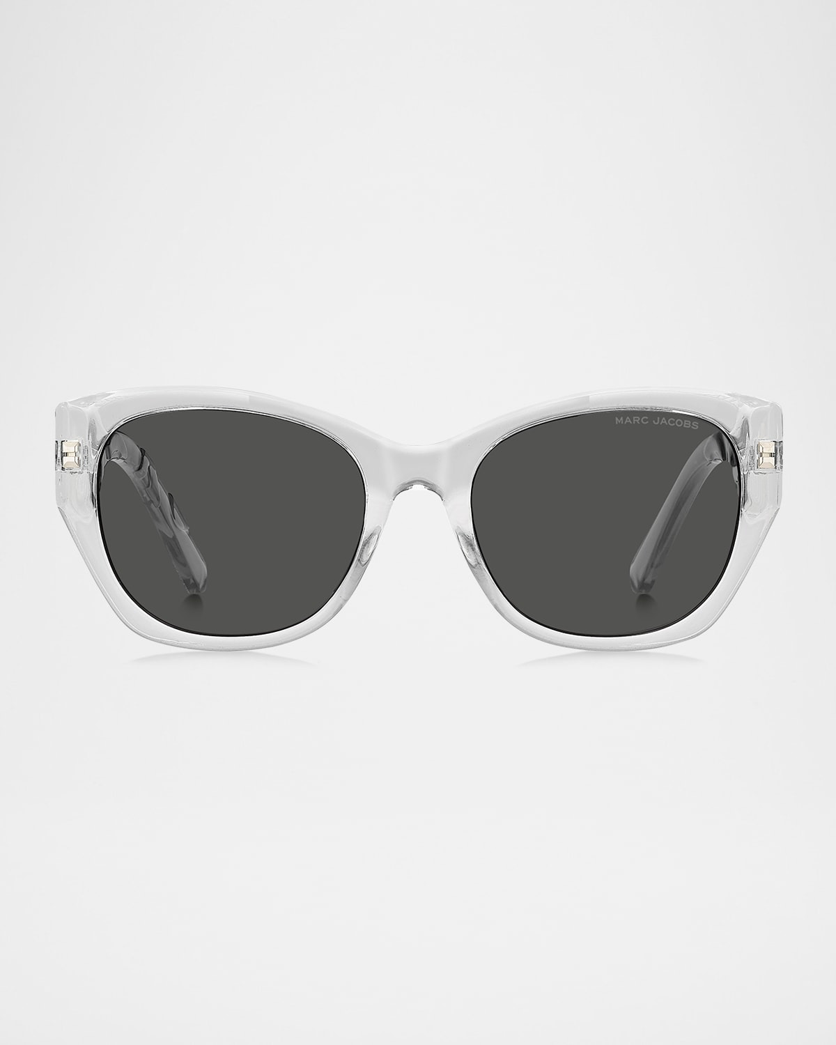 - Marc Jacobs two-tone retangle sunglasses in acetate - Eye/bridge/temple (in mm): 54-19-145 - Gradient lenses - Saddle nose bridge - Thick, tapered arms - Oversized logo at the temples - Nylon/polyamide - Wipe clean - 100% UVA/UVB protection - Imported - Proposition 65 warning for California residents