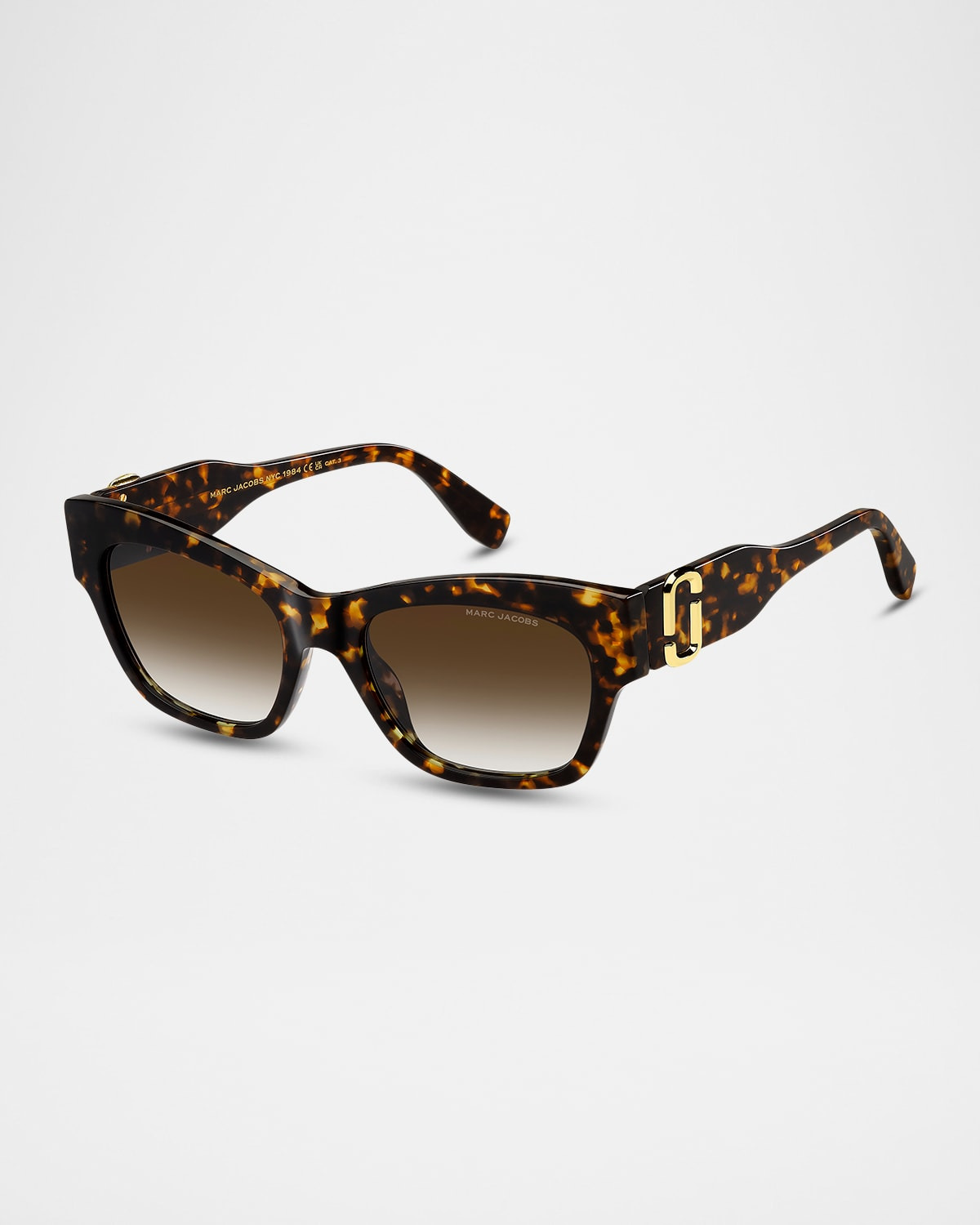 - Marc Jacobs rectangle sunglasses in acetate - Lens/bridge/temple (in mm): 54-19-140 - Gradient lenses - Logo on left lens - Saddle nose bridge - Logo on temples - Wide, tapered arms - Wipe clean - 100% UVA/UVB protection - Imported - Proposition 65 warning for California residents