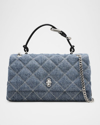 - A fresh iteration of their runway-to-reality Dual silhouette, discover undeniable glamour and refined details in this true convertible handbag. Crafted in vintage-inspired washed denim with distinctive dual hardware, this style features a plush quilted finish, jean-inspired stitching, a refined metal turnlock closure, and a pull-through chain strap for over-the-shoulder or crossbody styling. With a sleek knotted-leather top-handle for effortless hand-held carrying, an exterior back slip pocket, and an interior zip-pocket for optimized organizing, move from day to night with sophistication and ease. - Marc Jacobs "Dual" shoulder bag in quilted denim fabric - Top handle with knot accent, 5.3" drop - Sliding chain shoulder strap, 27.2"L - Can be worn as a top handle or shoulder/crossbody bag - Flap top with turn-lock closure - Exterior, back slip pocket - Interior, one zip pocket, one card slot - Lining: Polyester - Approx. 6.5"H x 11.8"W x 4.7"D - Cotton - Spot clean - Imported
