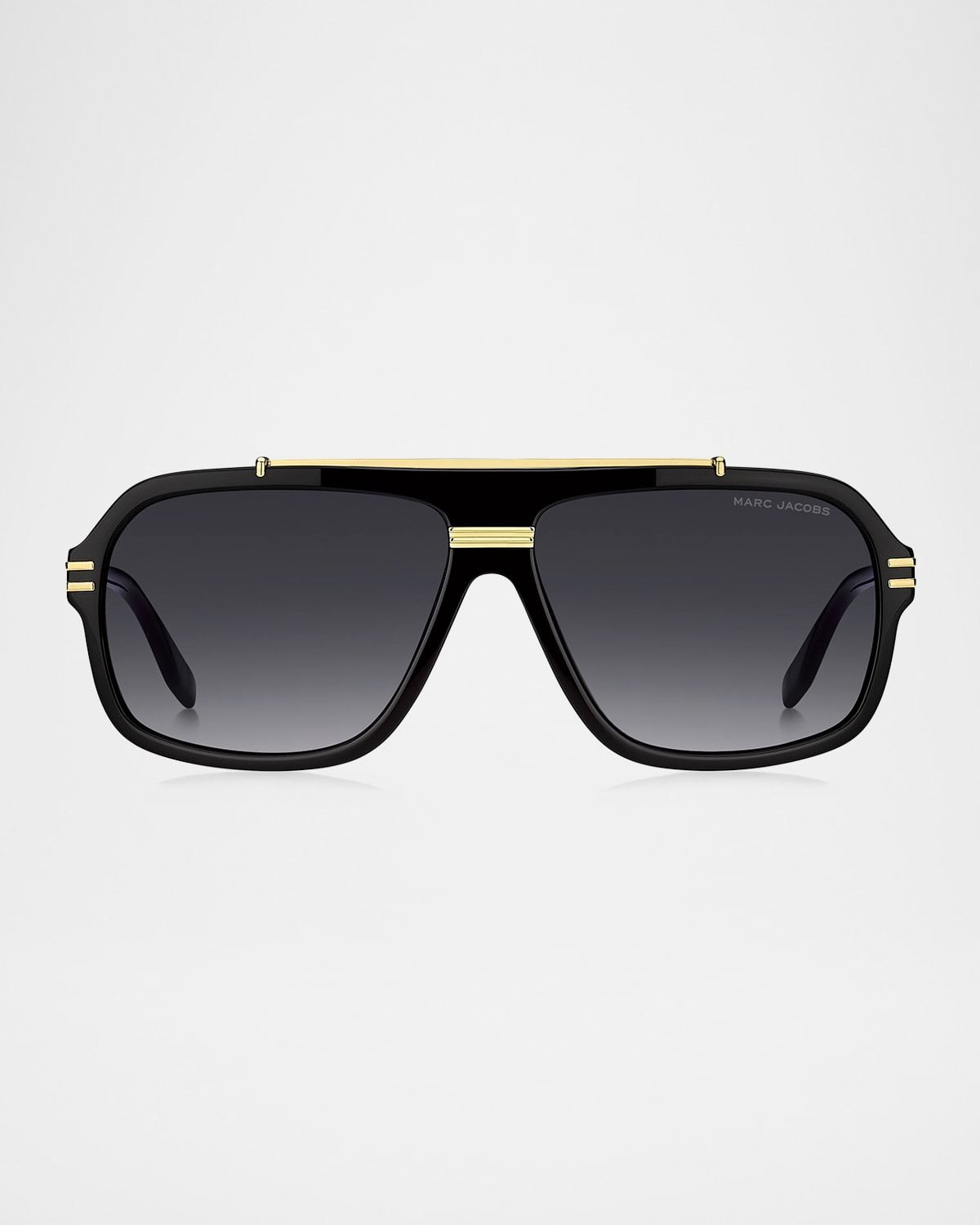 - Marc Jacobs aviator sunglasses in acetate - Eye/bridge/temple (in mm): 60-13-145 - Gradient lenses - Saddle nose bridge - Brow bar - Thin, tapered arms - Logo engraved at the temples - Acetate - Wipe clean - 100% UVA/UVB protection - Imported - Proposition 65 warning for California residents