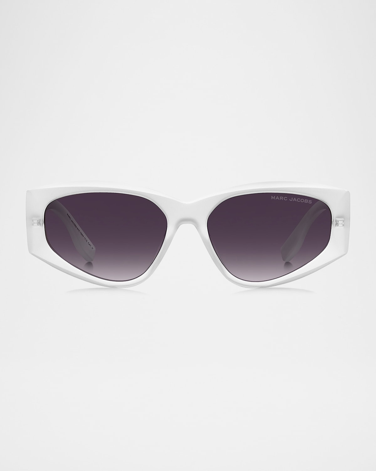 - Marc Jacobs "Marc 803S" cat-eye sunglasses - Eye/bridge/temple (in mm): - 56-16-145 - Gradient lense - Saddle nose bridge - Embossed logo lettering on temples - Wide, tapered arms - 100% UVA/UVB protection - Nylon - Wipe clean - Imported - Proposition 65 warning for California residents