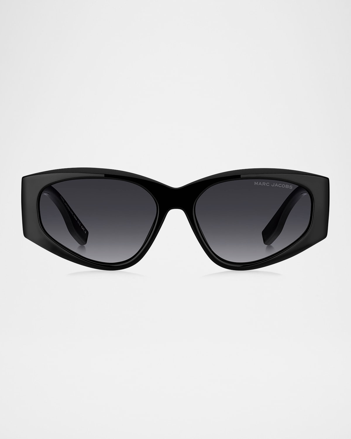 - Marc Jacobs "Marc 803S" cat-eye sunglasses - Eye/bridge/temple (in mm): - 56-16-145 - Gradient lense - Saddle nose bridge - Embossed logo lettering on temples - Wide, tapered arms - 100% UVA/UVB protection - Nylon - Wipe clean - Imported - Proposition 65 warning for California residents