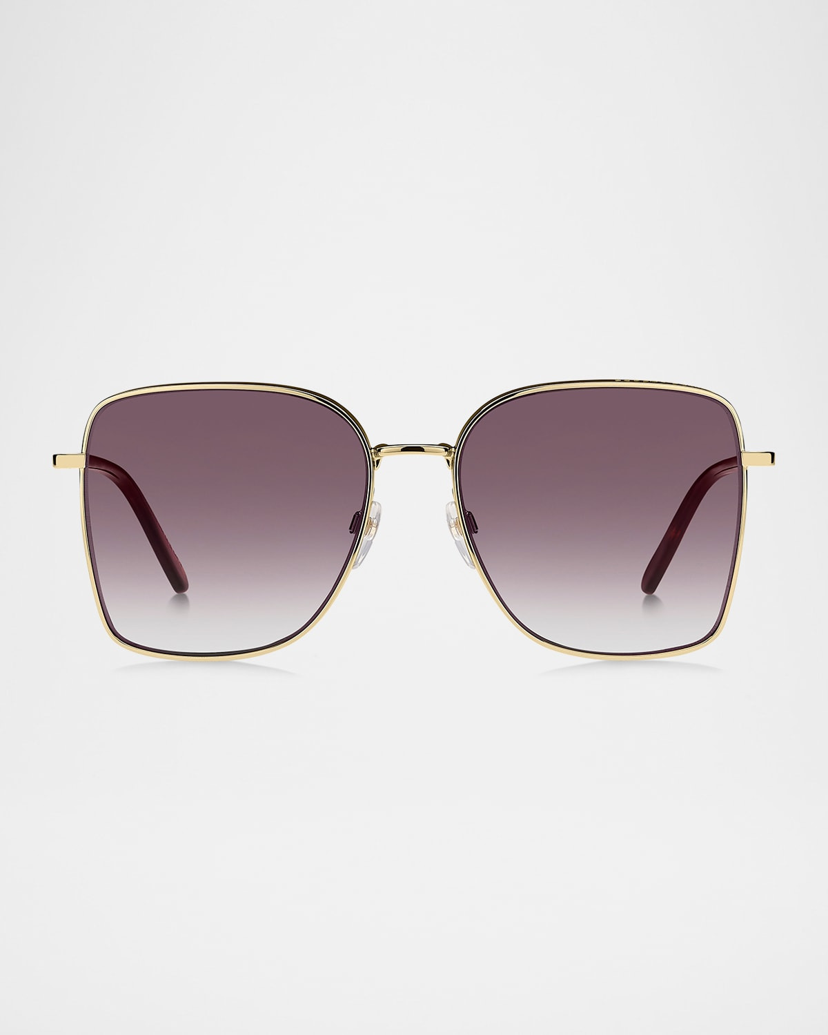 - Marc Jacobs "Marc 829S" square sunglasses in metal - Eye/bridge/temple (in mm): - 58-17-145 - Gradient lenses/solid-color lenses - Adjustable nose pads - Thin, tapered arms - Capped earpieces - Wipe clean - 100% UVA/UVB protection - Imported - Proposition 65 warning for California residents