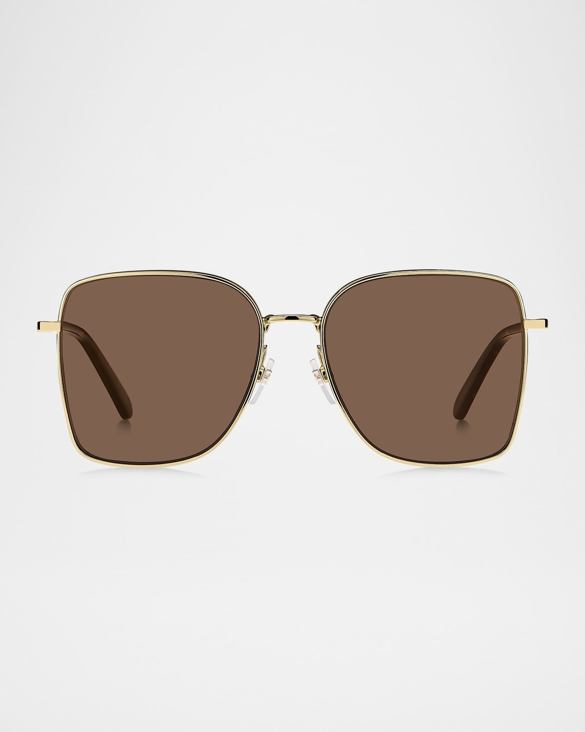 - Marc Jacobs "Marc 829S" square sunglasses in metal - Eye/bridge/temple (in mm): - 58-17-145 - Gradient lenses/solid-color lenses - Adjustable nose pads - Thin, tapered arms - Capped earpieces - Wipe clean - 100% UVA/UVB protection - Imported - Proposition 65 warning for California residents