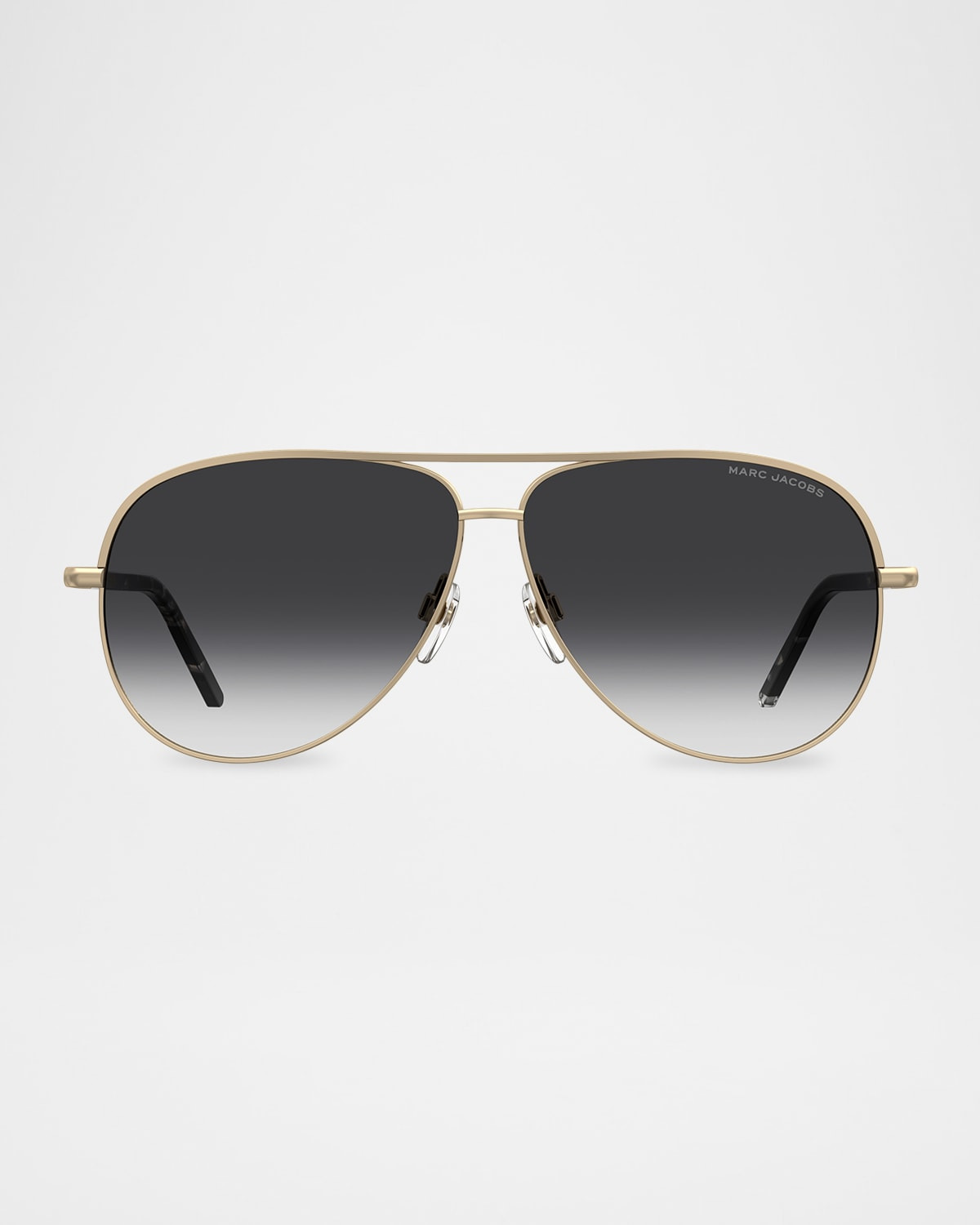 - Marc Jacobs "Marc 765S" aviator sunglasses in metal - Lens/bridge/temple (in mm): 61-10-145 - Gradient lenses; logo on corner - Double nose bridge - Adjustable nose pads - Logo-embossed temples - Thin, tapered arms - Metal - Wipe clean - 100% UVA/UVB protection - Imported - Proposition 65 warning for California residents