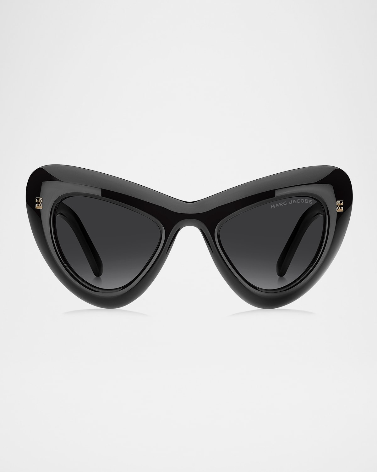 - Marc Jacobs studded cat eye sunglasses in acetate - Eye/bridge/temple (in mm): 48-24-140 - Gradient lenses - Thin, tapered arms - Logo printed at the temples - Acetate - Wipe clean - 100% UVA/UVB protection - Imported - Proposition 65 warning for California residents