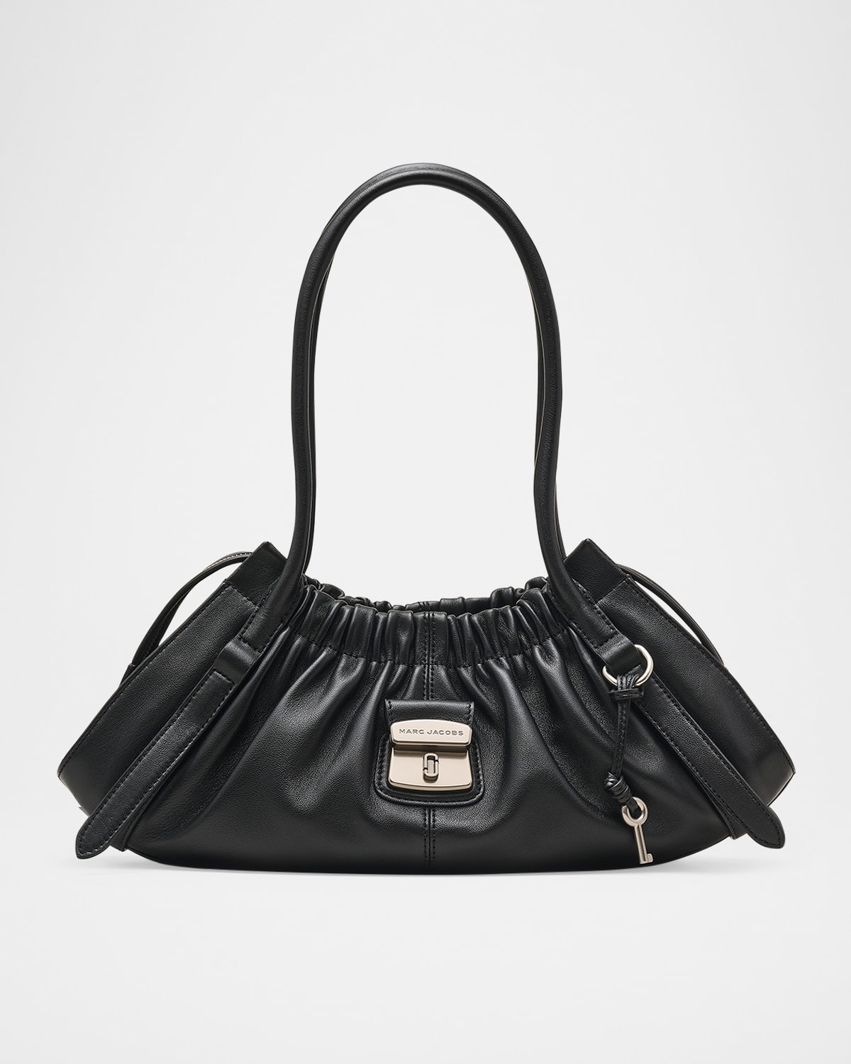 - Marc Jacobs "The Christina" lightweight satchel shoulder bag crafted from butter-soft Nappa leather and embellished with the iconic hanging key charm - Design based on the archival Marc by Marc "Dreamy Logo" collection, known for its soft, supple leather, pushlock hardware, and scrunch detailing - Rolled shoulder straps, 10.6" drop - Two-way zip top closure - Interior, one zip pocket - Polyester faille lining - Approx. 4.9"H x 16.9"W x 4.5"D - Imported