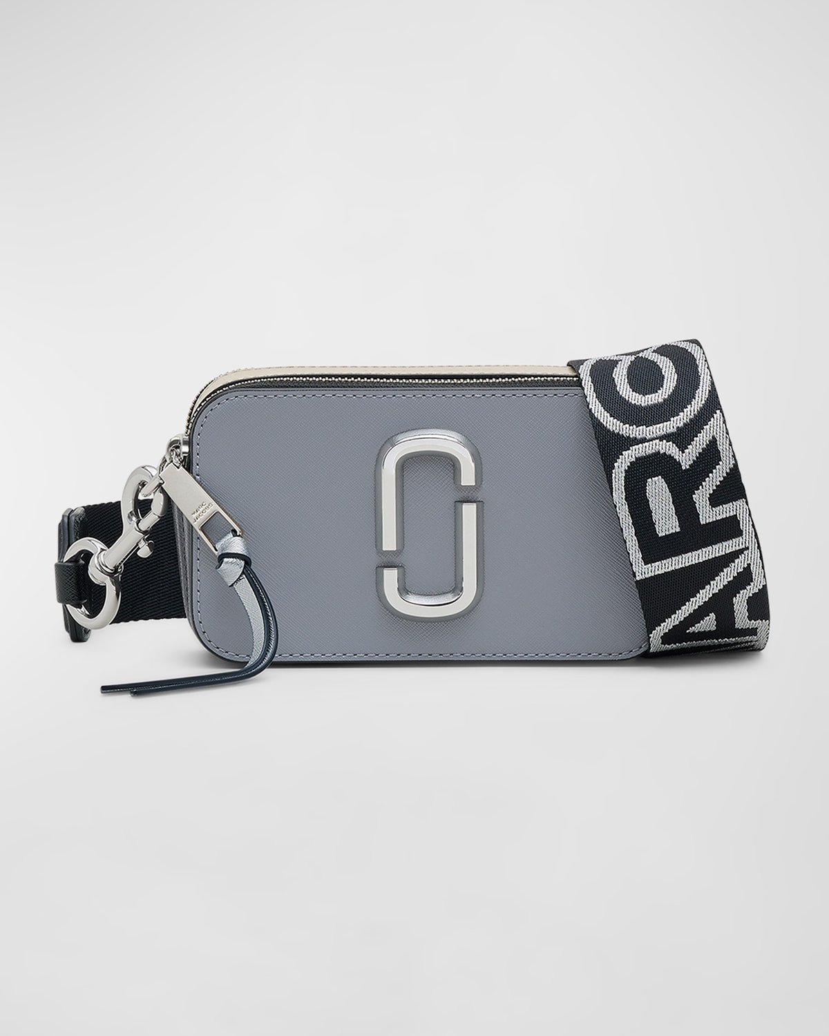 - Marc Jacobs "The Snapshot" crossbody bag in calf leather - Features signature double J monogram - Detachable, adjustable branded web crossbody strap, 26.8"L - Double zip top closure - Exterior, back slip pocket - Interior, one slip pocket - Lining: Polyester - Approx. 4.1"H x 7.1"W x 2.4"D - Imported