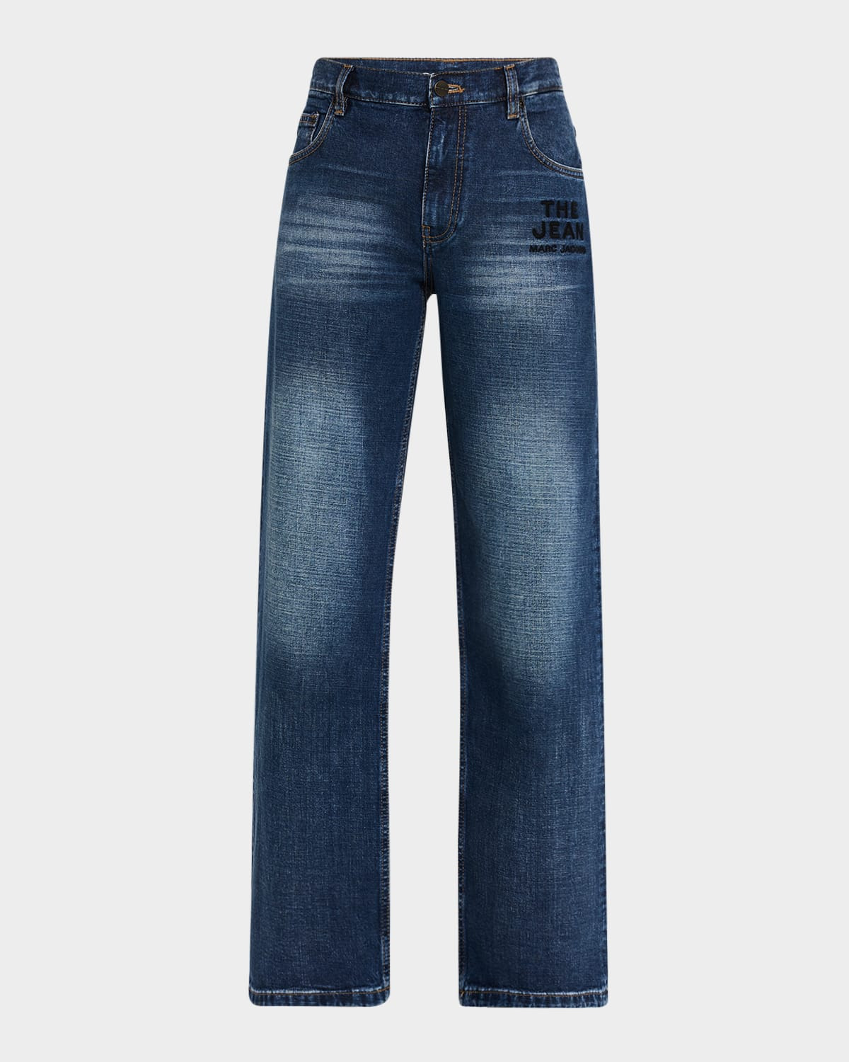 - Marc Jacobs "The Jean" mid-washed denim pants featuring iconic "M" stitched back-pockets and signature branded embroidered front - High rise - Five-pocket style - Straight legs - Full length - Button/zip fly; belt loops - Cotton - Imported