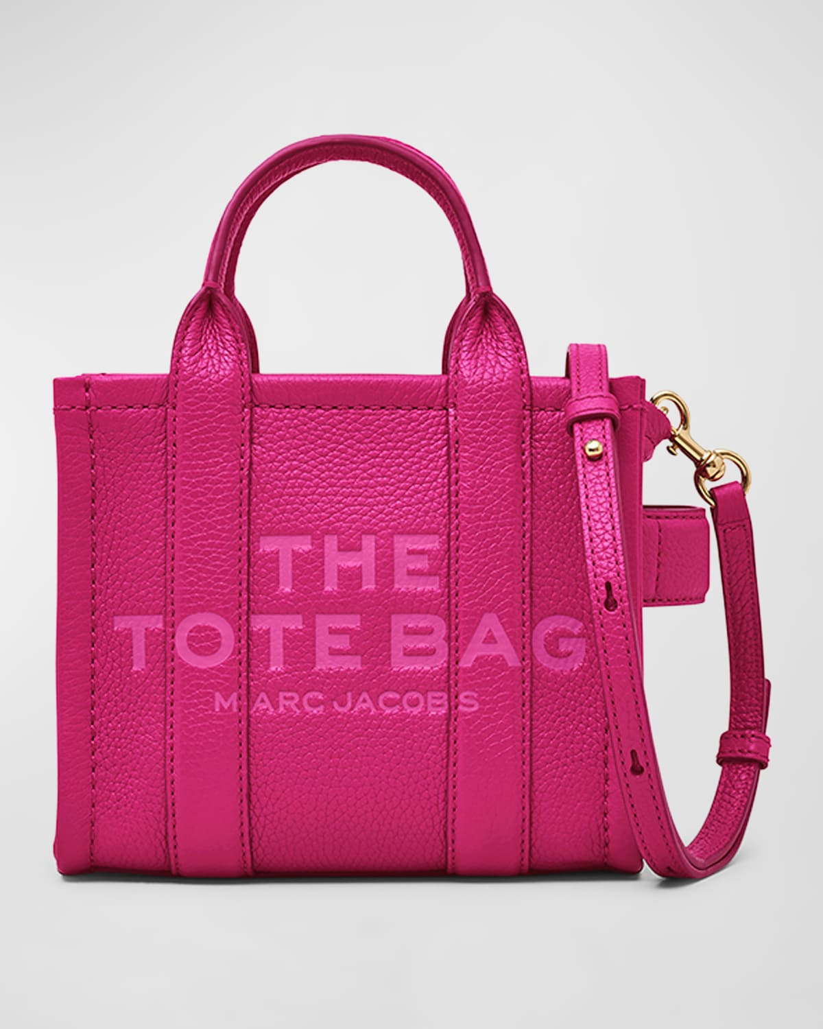 Marc Jacobs calf leather tote bag with embossed logo Flat top handles, 4.7" drop Detachable, adjustable shoulder strap, 45.3"L Can be worn as a top handle or shoulder bag Recessed zip top closure Exterior, side strap detail Approx. 10.6"H x 13.2"W X 5.9"D Imported